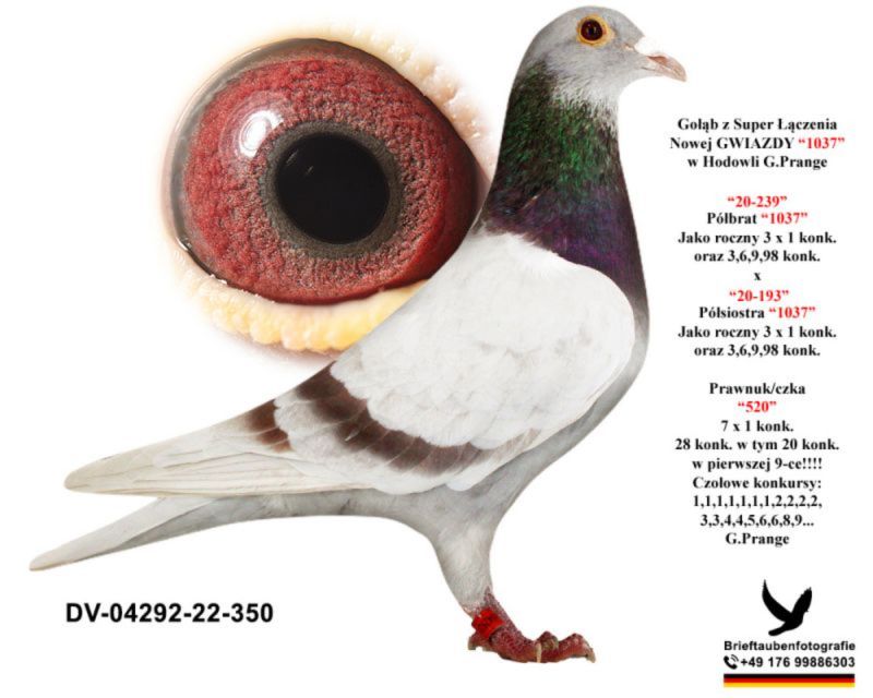 Opis: Informacje o pochodzeniu ptaka zawarte w rodowodzie. Więcej informacji pod nr telefonu 609886708.