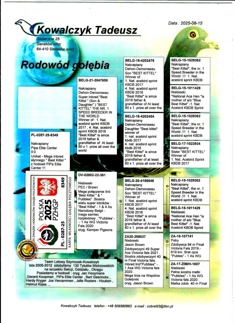 PL-0287-25-8349 - Mega inbred " Best Kittel" z hodowli PiPa Elite Center