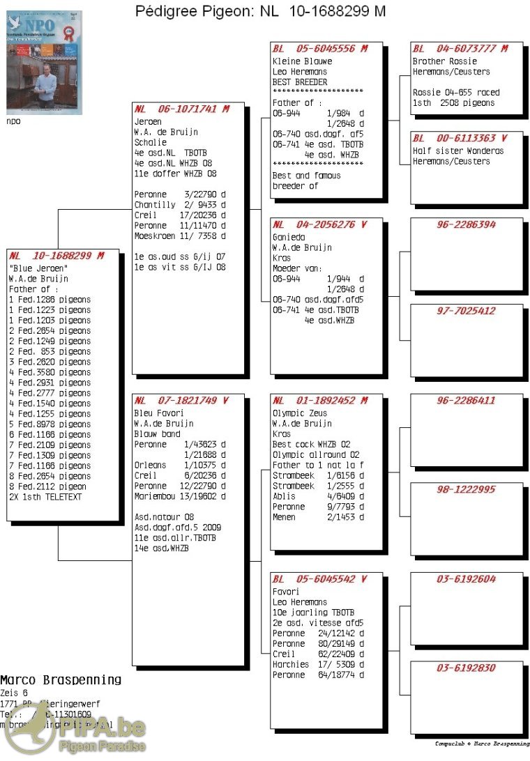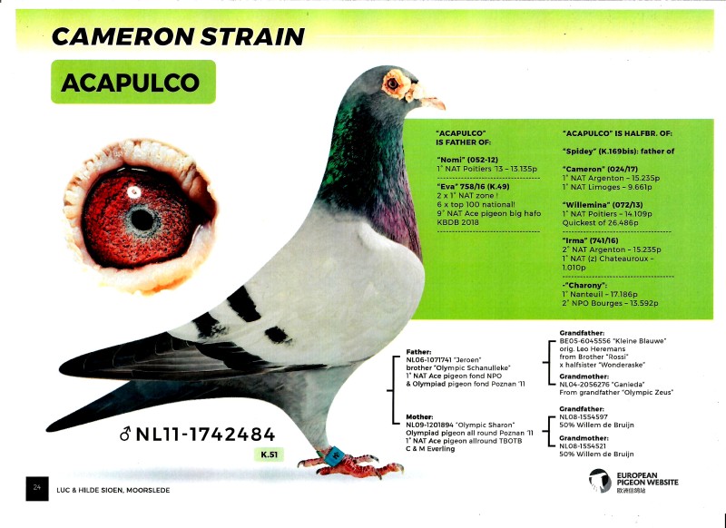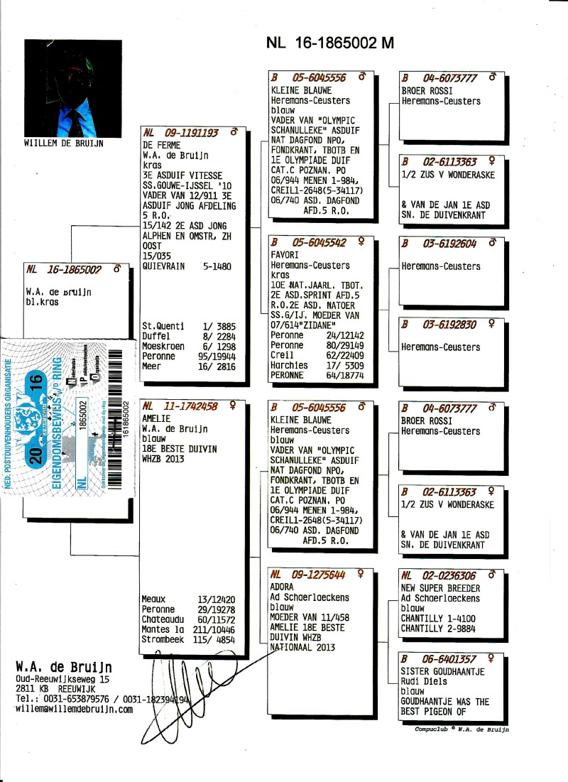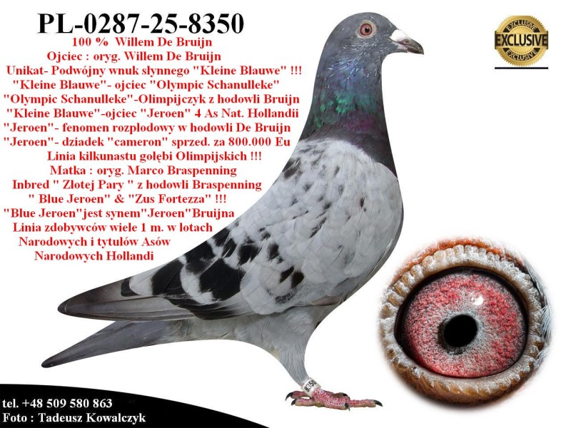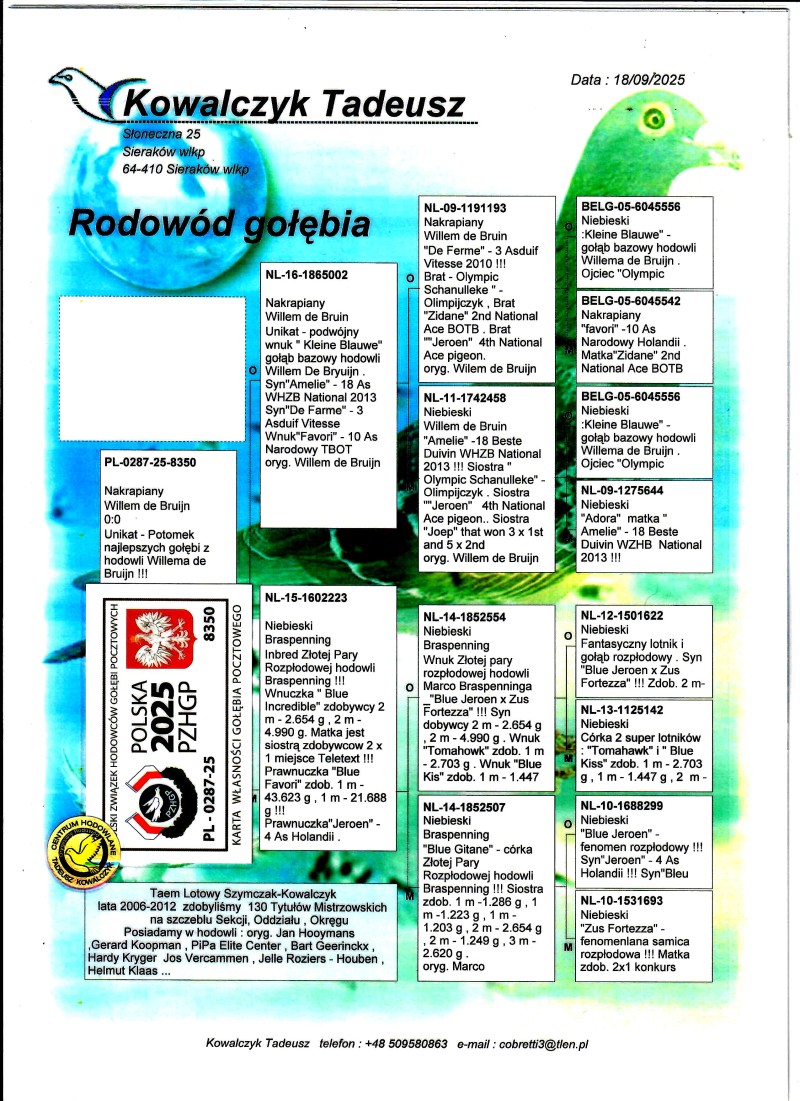 PL-0287-25-8350 - Potomek najlepszych gołębi z hodowli Willem de Bruijn