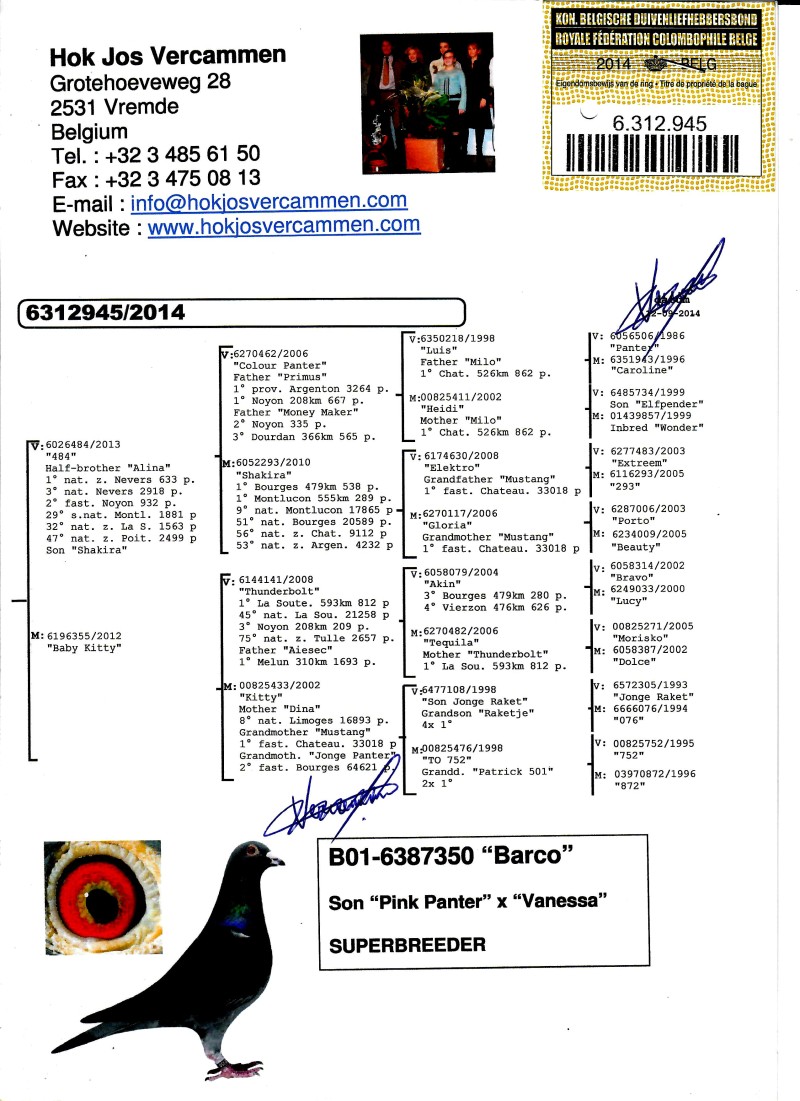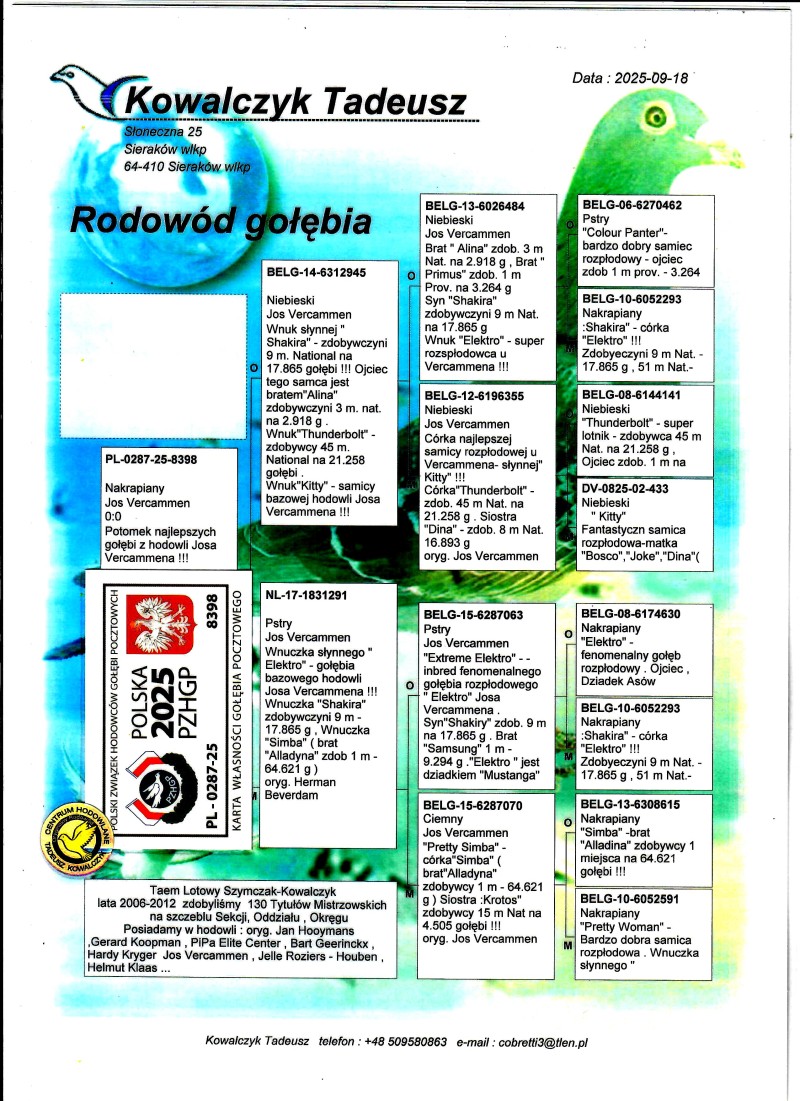 PL-0287-25-8398 - Potomek najlepszych gołębi Josa Vercammena