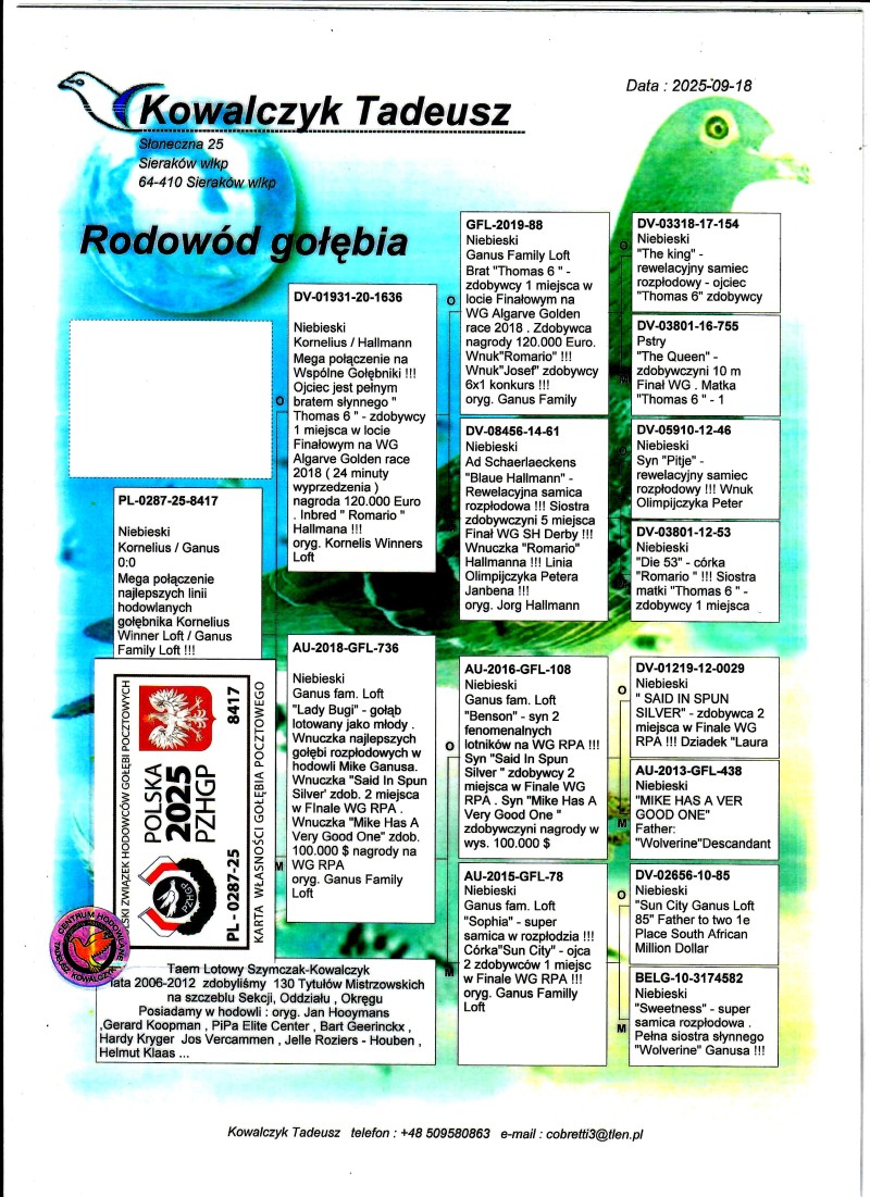 PL-0287-25-8417 - Mega połączenie gołębi z hodowli Kornelius / Ganus