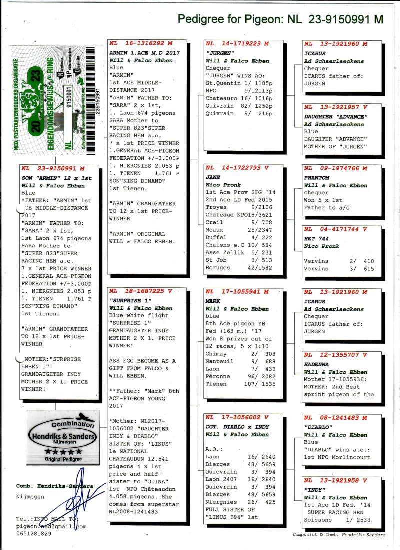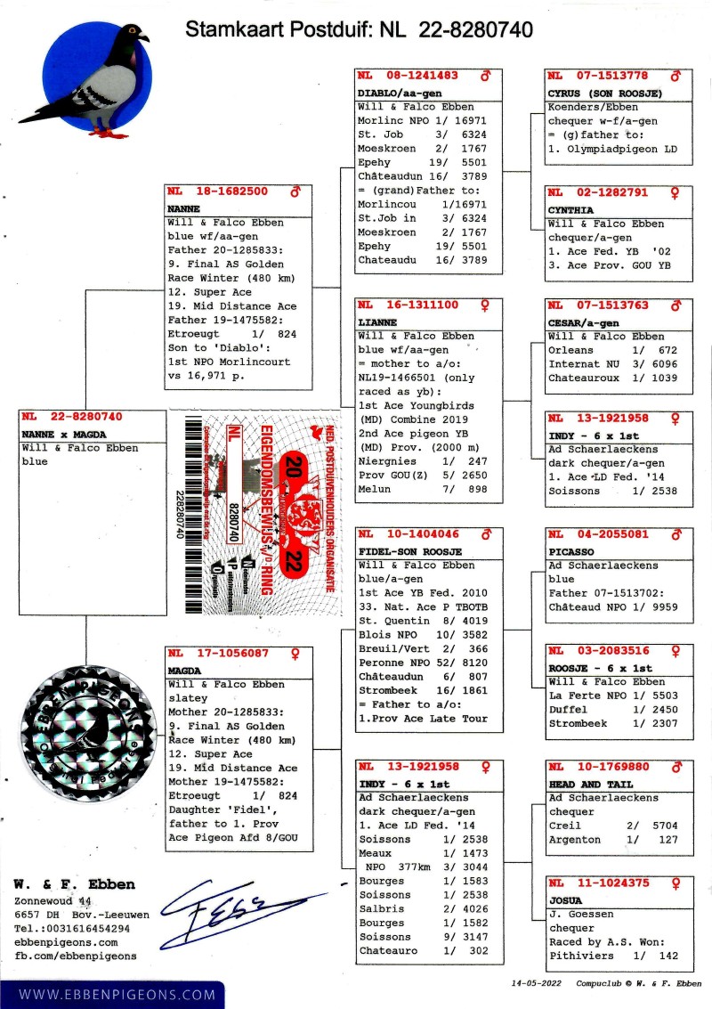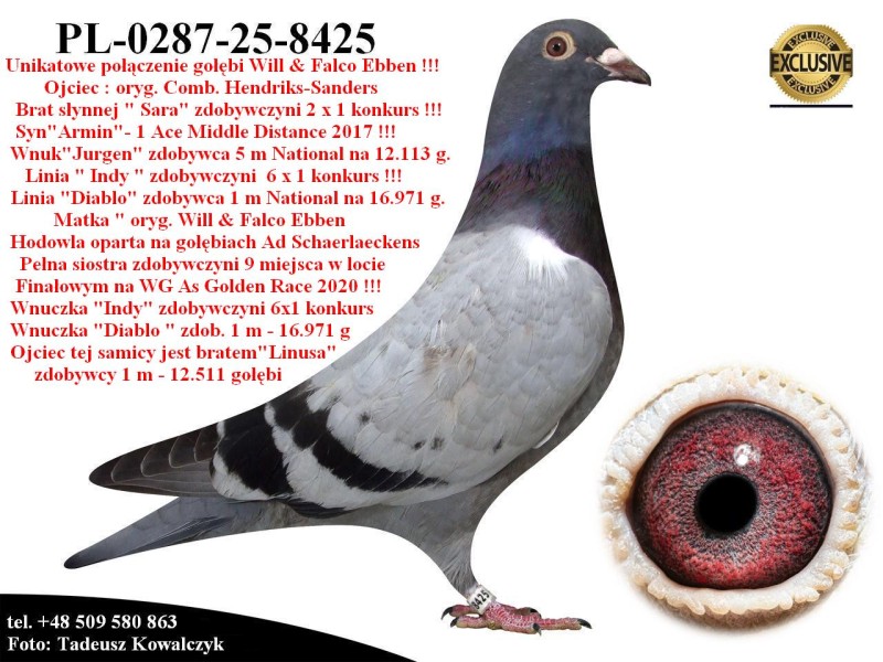 PL-0287-25-8425 - Potomek najlepszych gołębi z hodowli W.& F. Ebben
