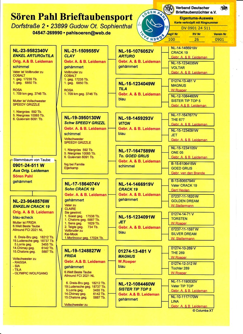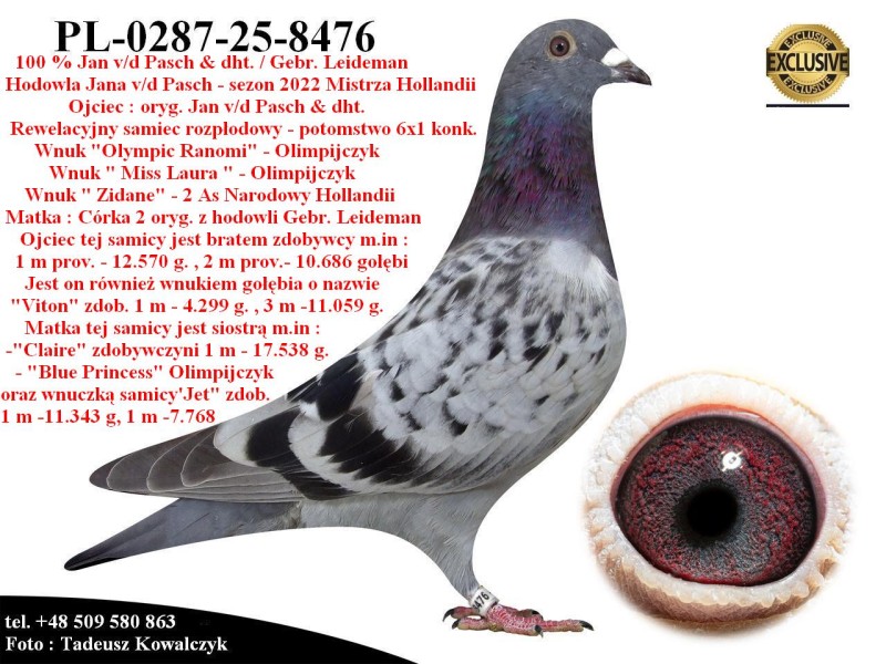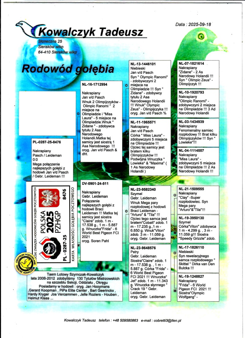 PL-0287-25-8476 -Rewelacyjne połączenie gołębi Jan v/d Pasch / Gebr. Leideman