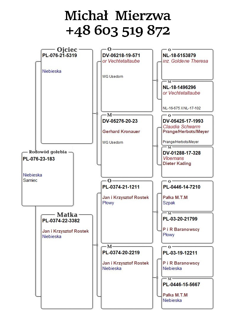 Opis: CAŁKOWITA LIKWIDACJA HODOWLI Oryginalny gołąb z hodowli Michała Mierzwy. Szczegóły pochodzenia w rodowodzie. Więcej informacji pod nr tel.: 603519872 **przed zalicytowaniem proszę o kontakt z właścicielem w sprawie płci oferowanego gołębia