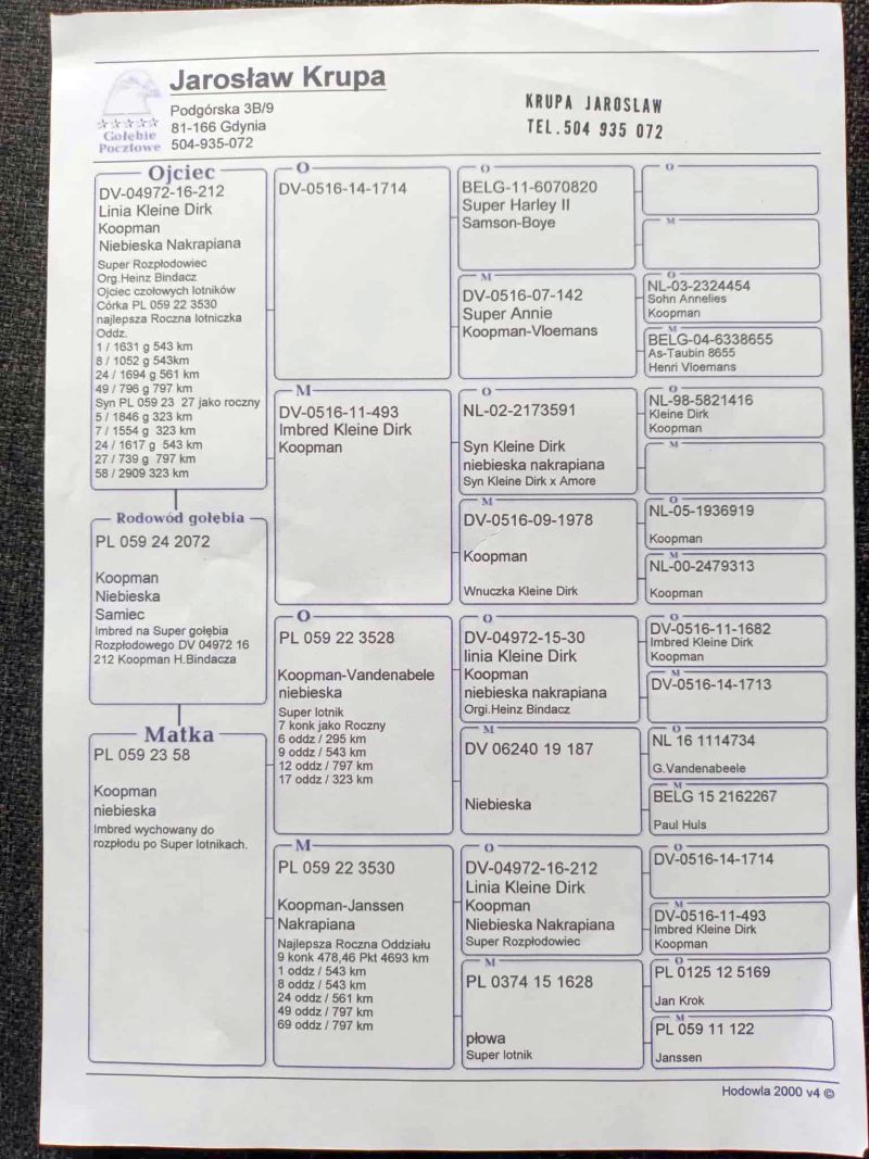 Opis: CAŁKOWITA LIKWIDACJA HODOWLI Oryginalny gołąb z hodowli Jarosława Krupy, z gołębnika Michała Mierzwy. Szczegóły pochodzenia w rodowodzie. Więcej informacji pod nr tel.: 603519872