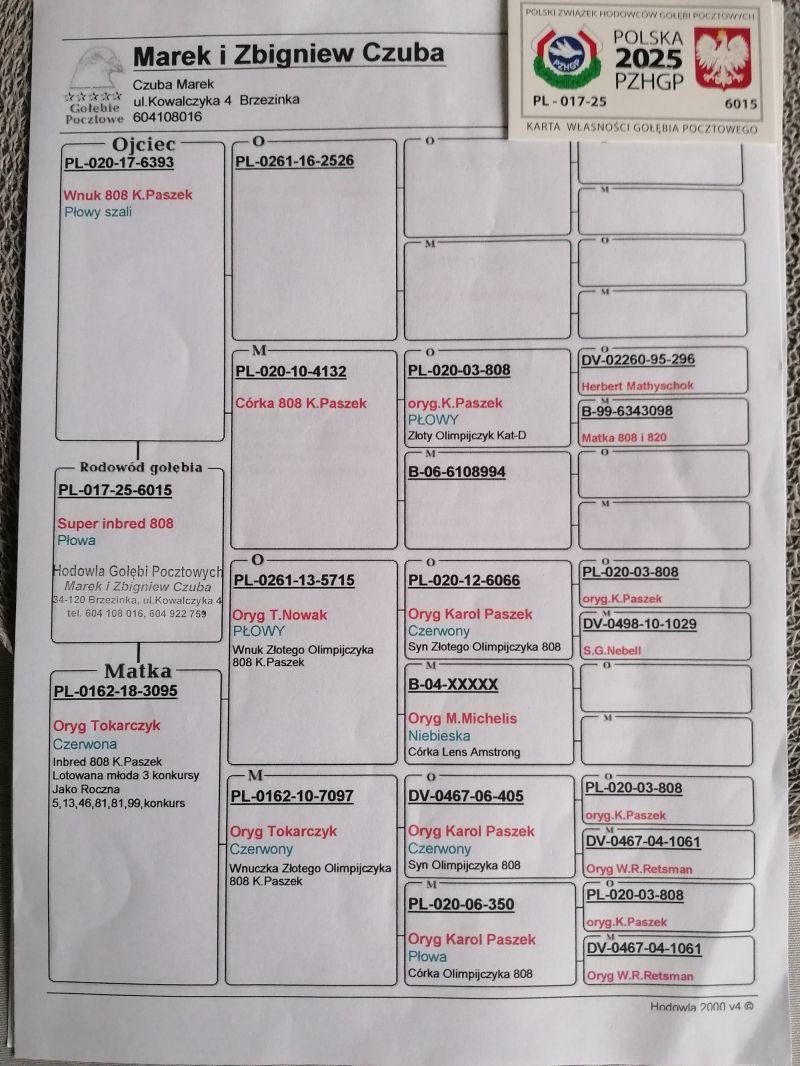 PL-017-25-6015 Wnuk Olimpijczyka 808 x Inbred 808 K. Paszek