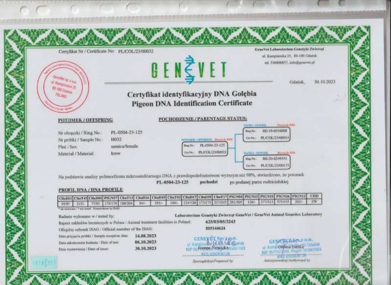 Opis: ORyGINALNY GOŁĄB Z HODOWOLI KAMIL KOWARA PODWÓJNA WNUCZKA "MUSTANG" CERTYFIKAT DNA"GOŁĄB W TRAKCIE PIERZENIA ,SZCZEGÓŁY POCHODZENIA W RODOWODZIE . ODBIÓR OSOBISTY LUB TRANSPORT 150ZŁ . KONTAKT 880-577-297