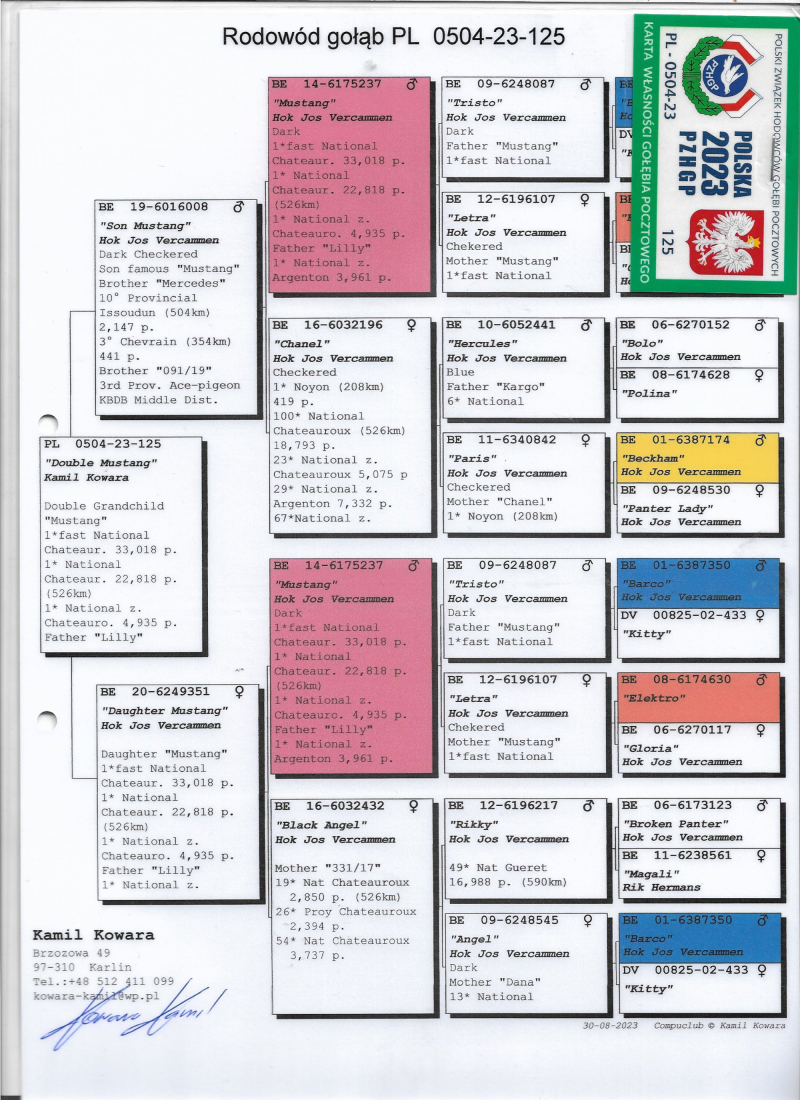 PL-504-23-125 ORYG KAMIL KOWARA PODWÓJNA WNUCZKA "MUSTANG" CERTYFIKAT DNA