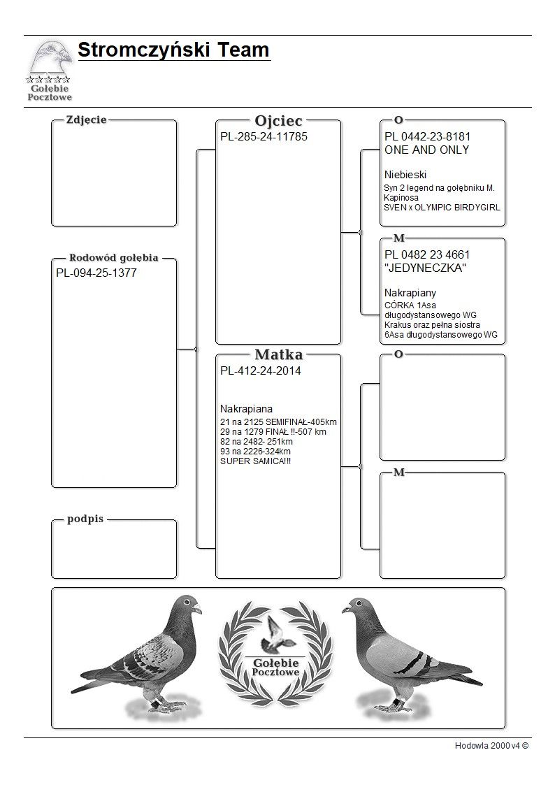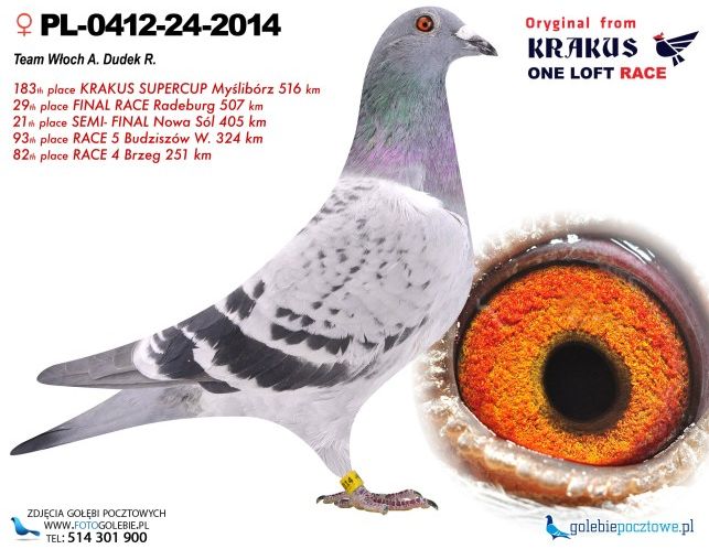 Opis: Młody z połączenia gołębi Kapinosa + Robert Sulejewski oraz samicy odkupionej z WG Krakus- super samiczka. Jej dzieci pomogły nam w zdobyciu 3 miejsca w lotach gołębi młodych Okręgu Poznań. Zapraszam do kontaktu telefonicznego. Istnieje możliwość wysyłki, odbioru osobistego bądź przetrzymania do wystawy ogólnopolskiej.