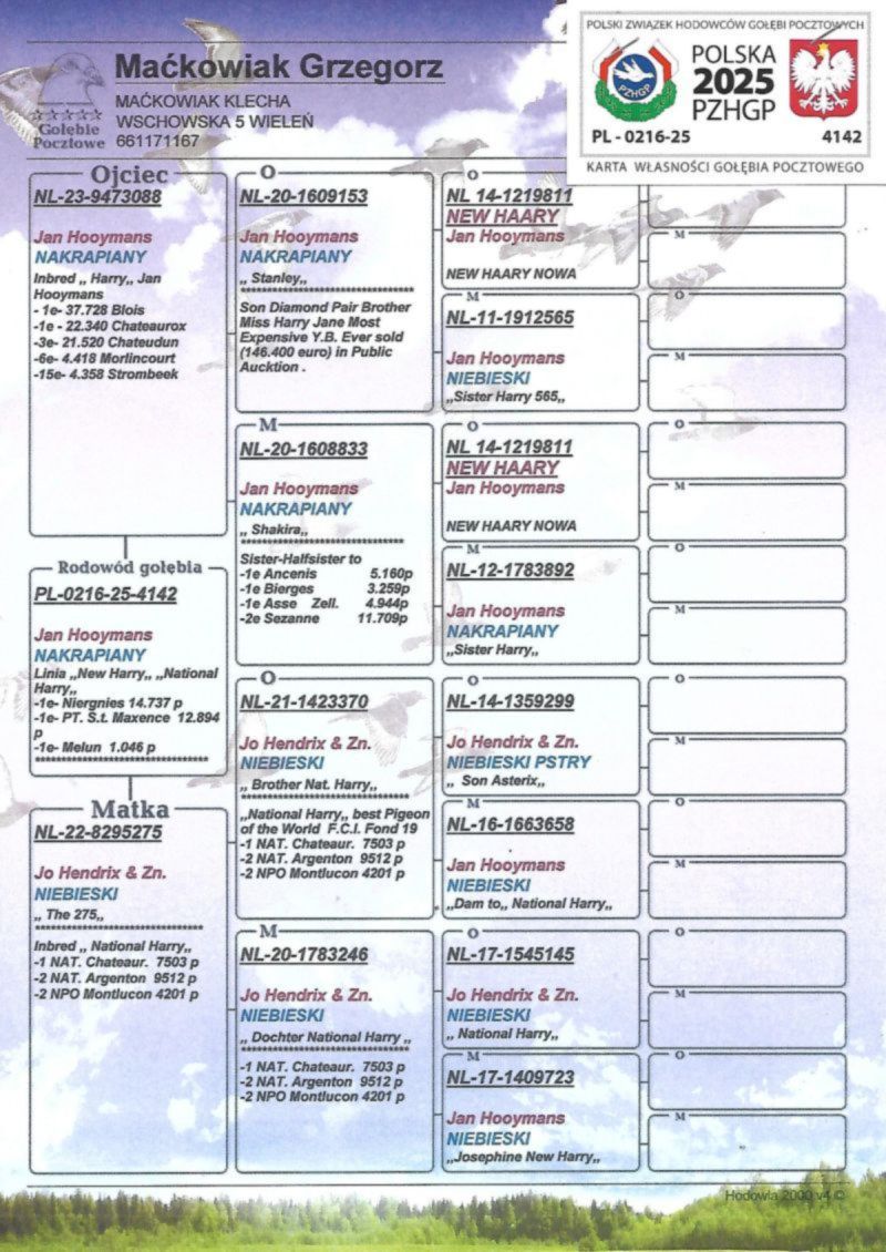 PL-0216-25-4142 Inbred Harry Jan Hooymans linia Natinal Harry Hendriks