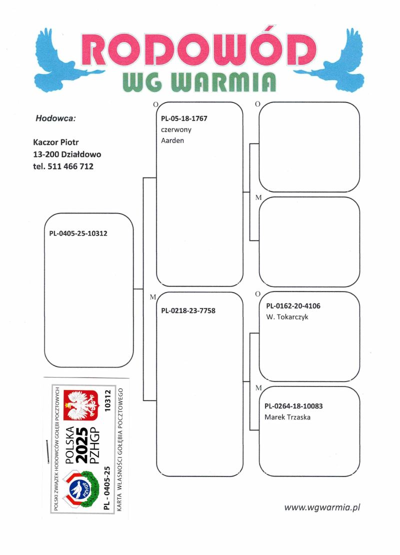 Opis: Uczestnik WG Warmia 2025, sezon VIII. Loty z kierunku północny wschód, Litwa. 180 z Finału, 186 AS, 145 z Extra Finału. Szczegóły pochodzenia w rodowodzie.