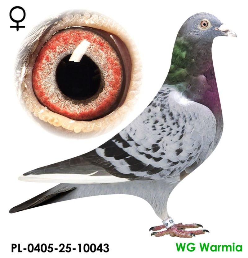Opis: Uczestnik WG Warmia 2025, sezon VIII. Loty z kierunku północny wschód, Litwa. 134 z Finału, 108 AS, 77 z Extra Finału. Szczegóły pochodzenia w rodowodzie.