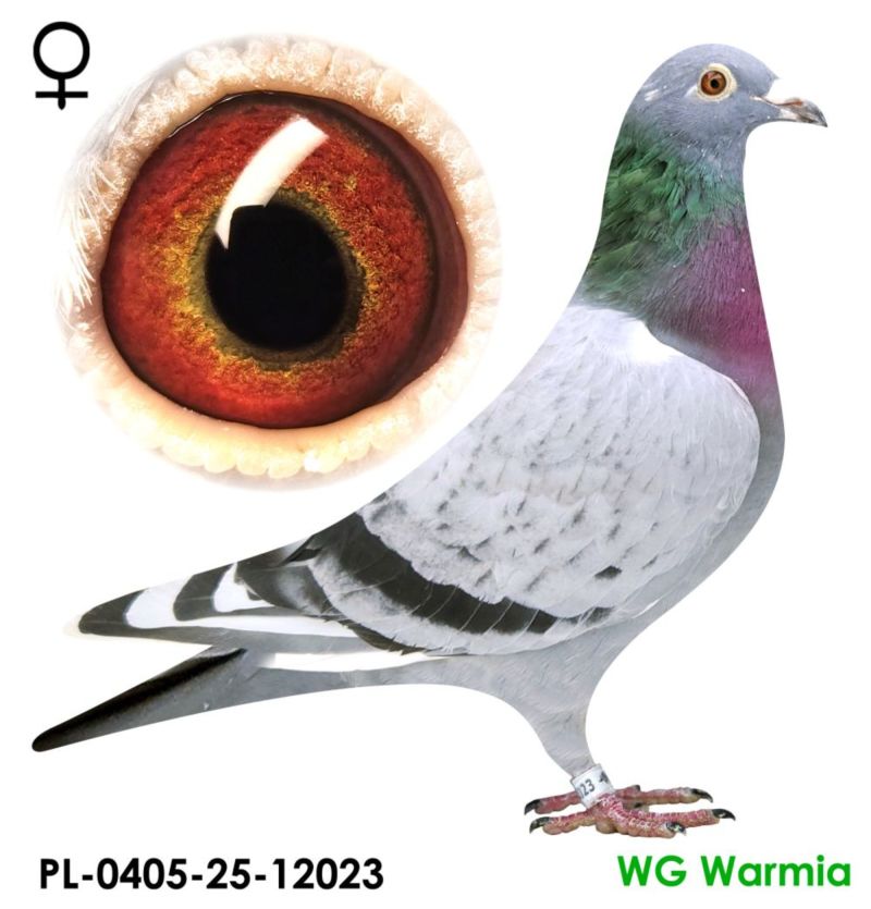 Opis: Uczestnik WG Warmia 2025, sezon VIII. Loty z kierunku północny wschód, Litwa. 110 z Finału, 42 AS, 45 z Extra Finału. Szczegóły pochodzenia w rodowodzie.