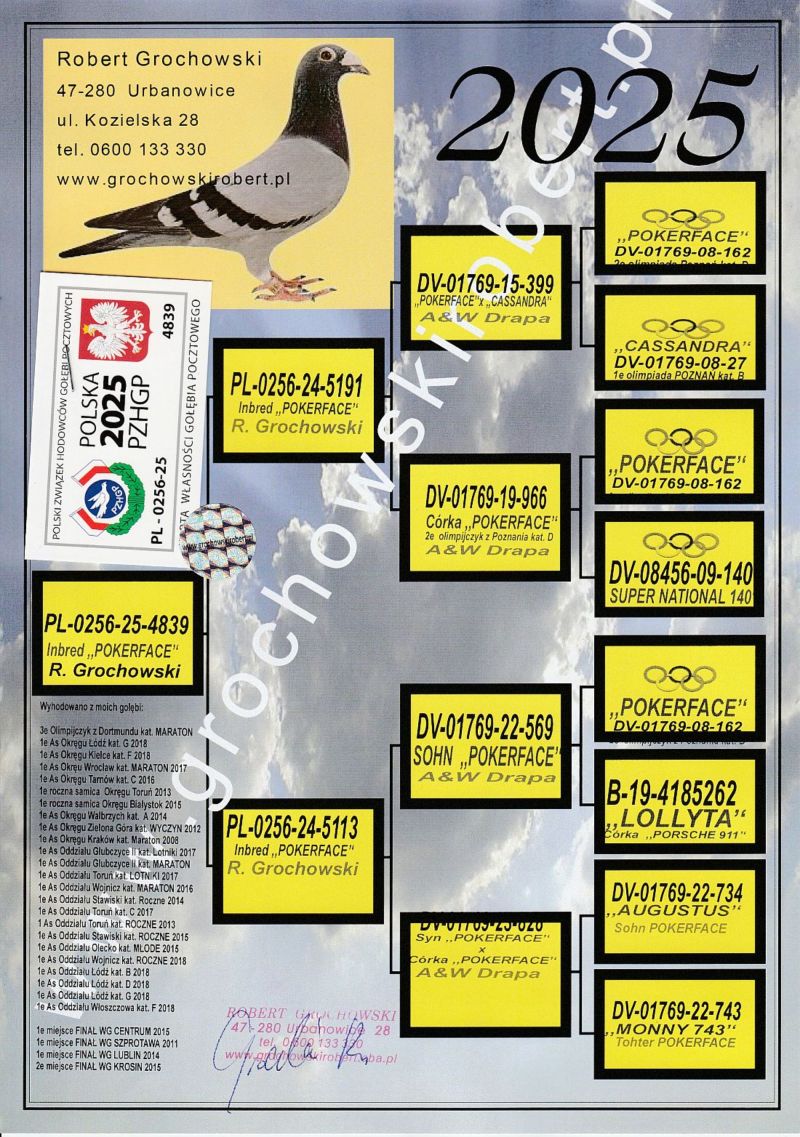 Opis: Oryginalny gołąb z hodowli Roberta Grochowskiego. Szczegóły pochodzenia w rodowodzie. Gołąb to prawdopodobnie SAMICA. Więcej informacji pod numerem 600133330 Przy opcji "KUP TERAZ" transport GRATIS (do najbliższego miasta od kupującego).