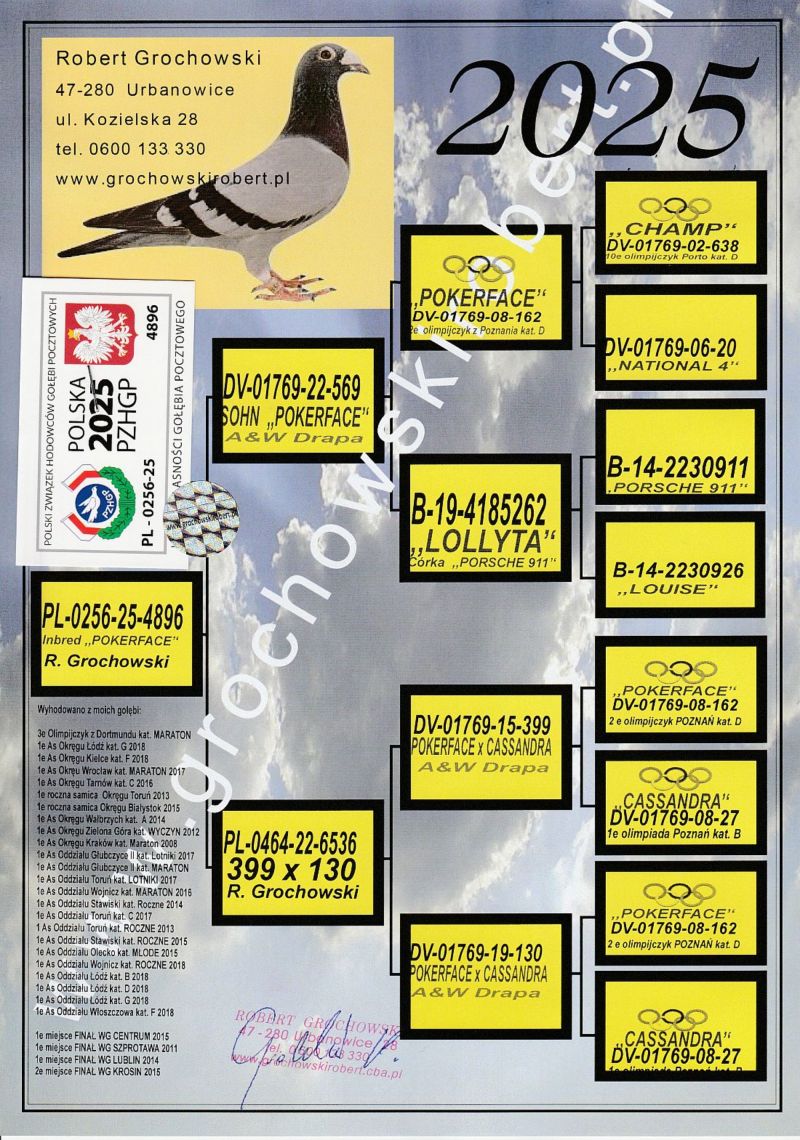 Opis: Oryginalny gołąb z hodowli Roberta Grochowskiego. Szczegóły pochodzenia w rodowodzie. Gołąb to prawdopodobnie SAMIEC. Więcej informacji pod numerem 600133330 Przy opcji "KUP TERAZ" transport GRATIS (do najbliższego miasta od kupującego).