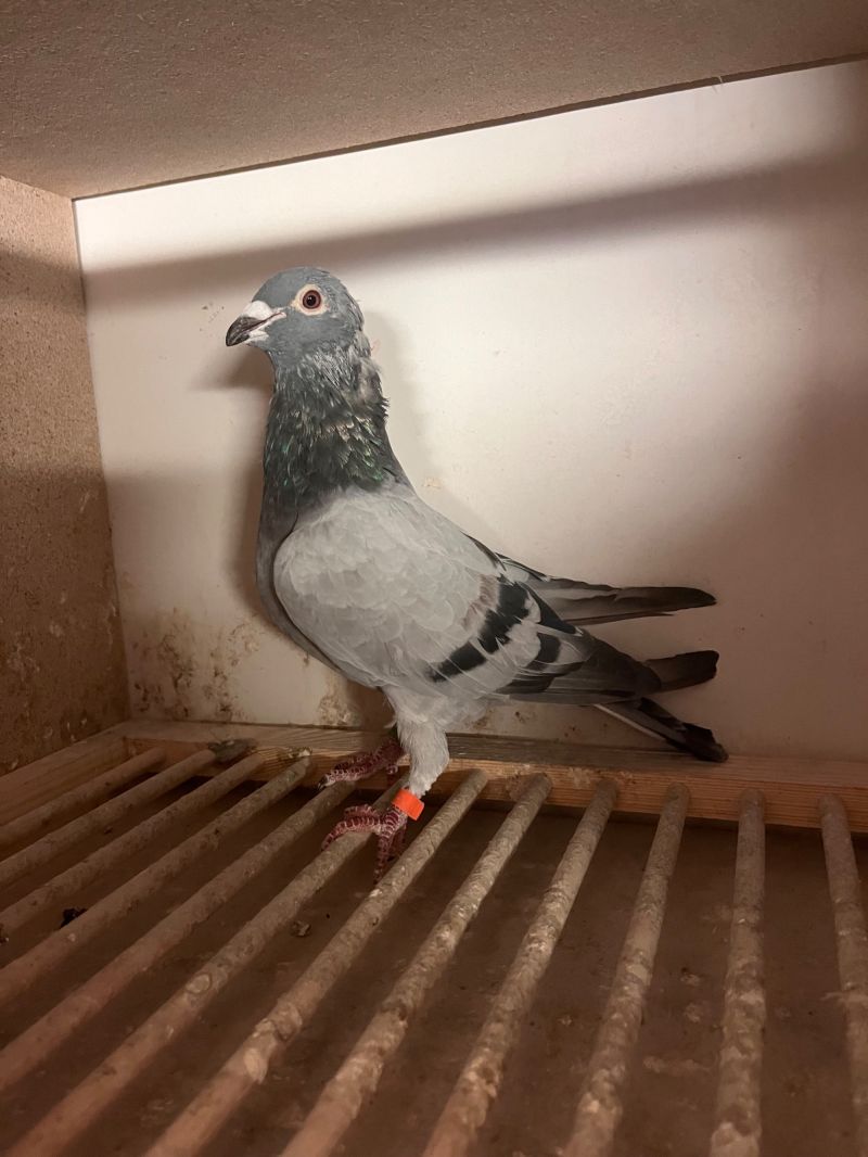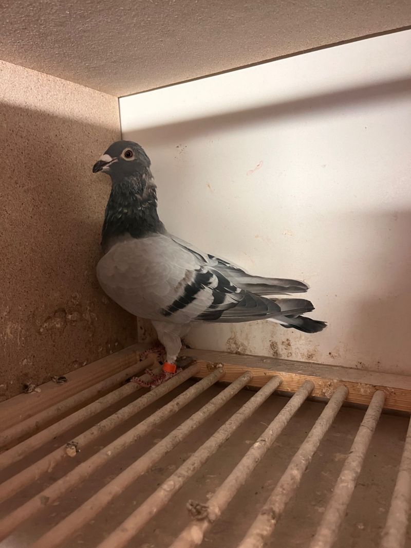 Opis: Gołąb w trakcie intensywnego pierzenia.