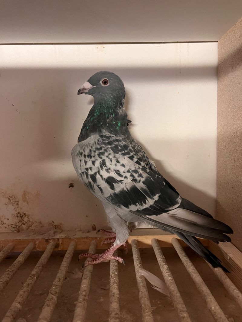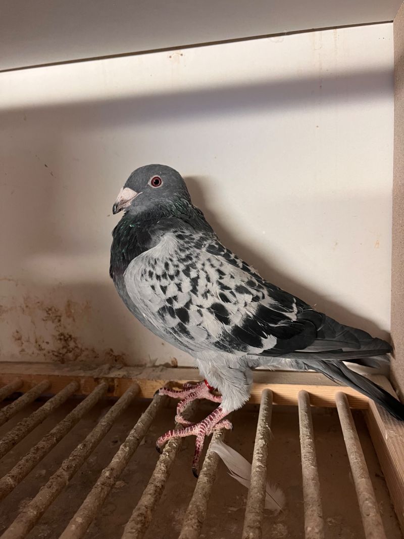 Opis: Gołąb w procesie intensywnego pierzenia.