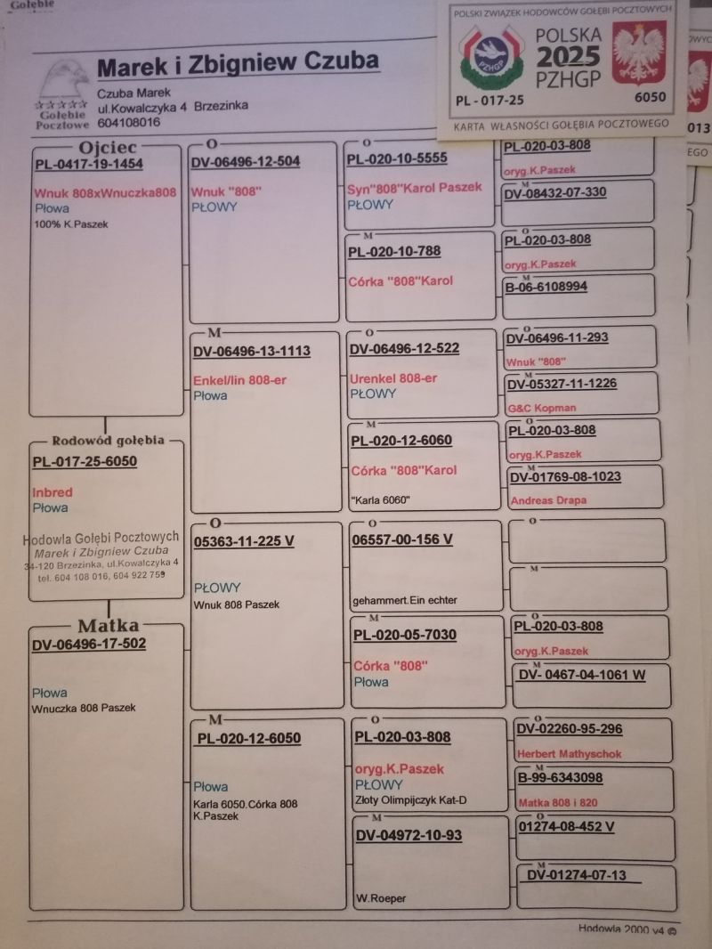 PL-017-25-6050 Inbred 808 x Wnuczka 808 K. Paszek