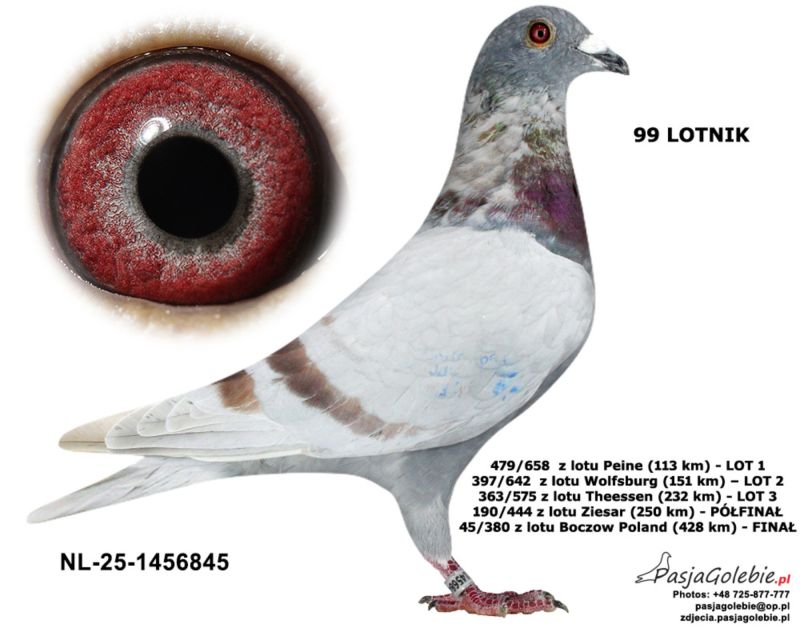 Osiągnięcia gołębi wypisane na zdjęciu.