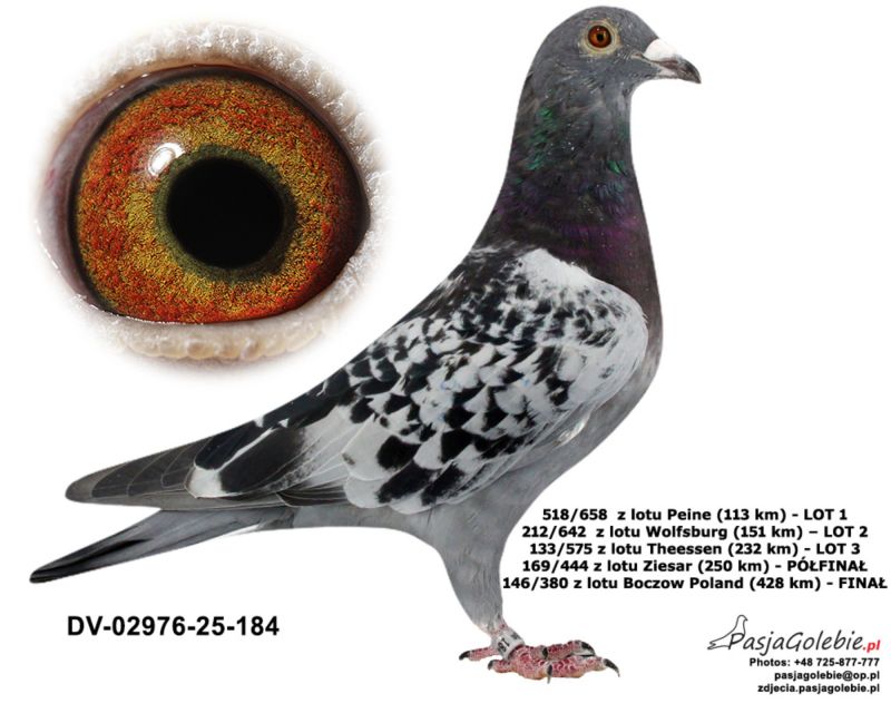 Osiągnięcia gołębi wypisane na zdjęciu.