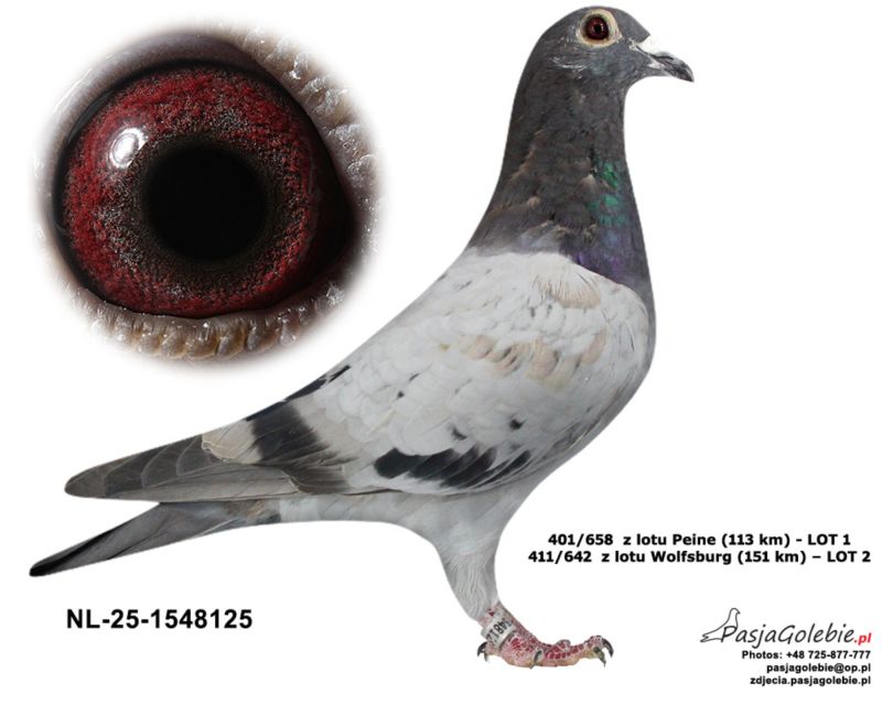 Osiągnięcia gołębi wypisane na zdjęciu.