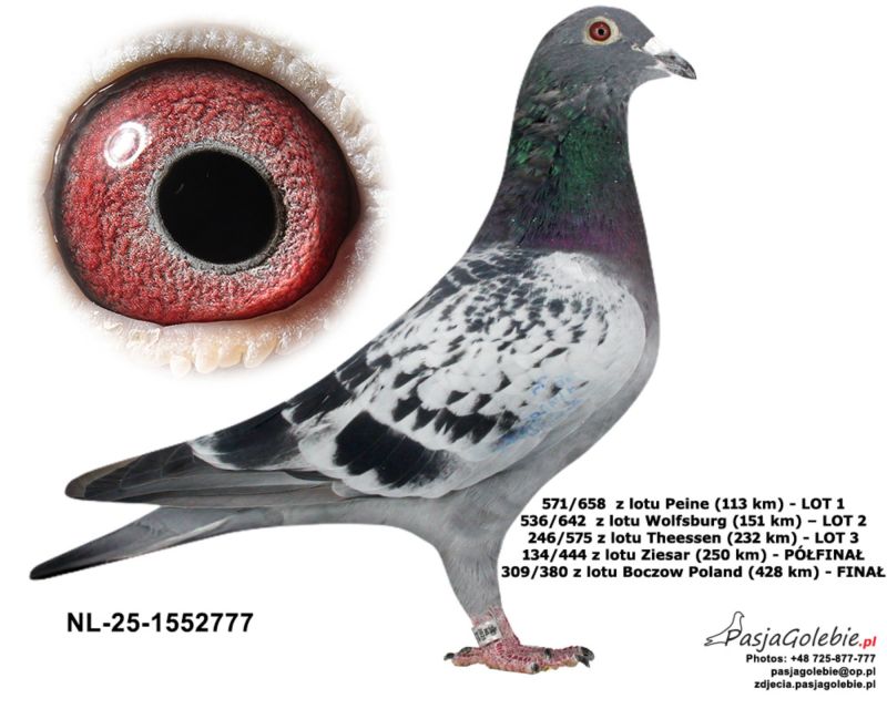 Osiągnięcia gołębi wypisane na zdjęciu.
