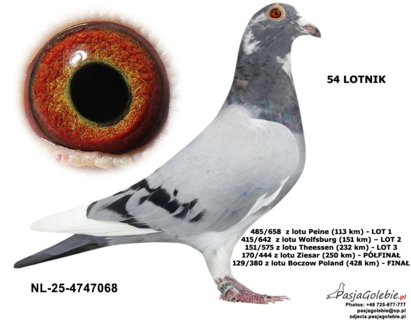 Osiągnięcia gołębi wypisane na zdjęciu.