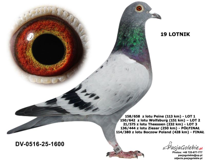 Osiągnięcia gołębi wypisane na zdjęciu.