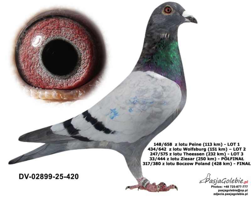 Osiągnięcia gołębi wypisane na zdjęciu.