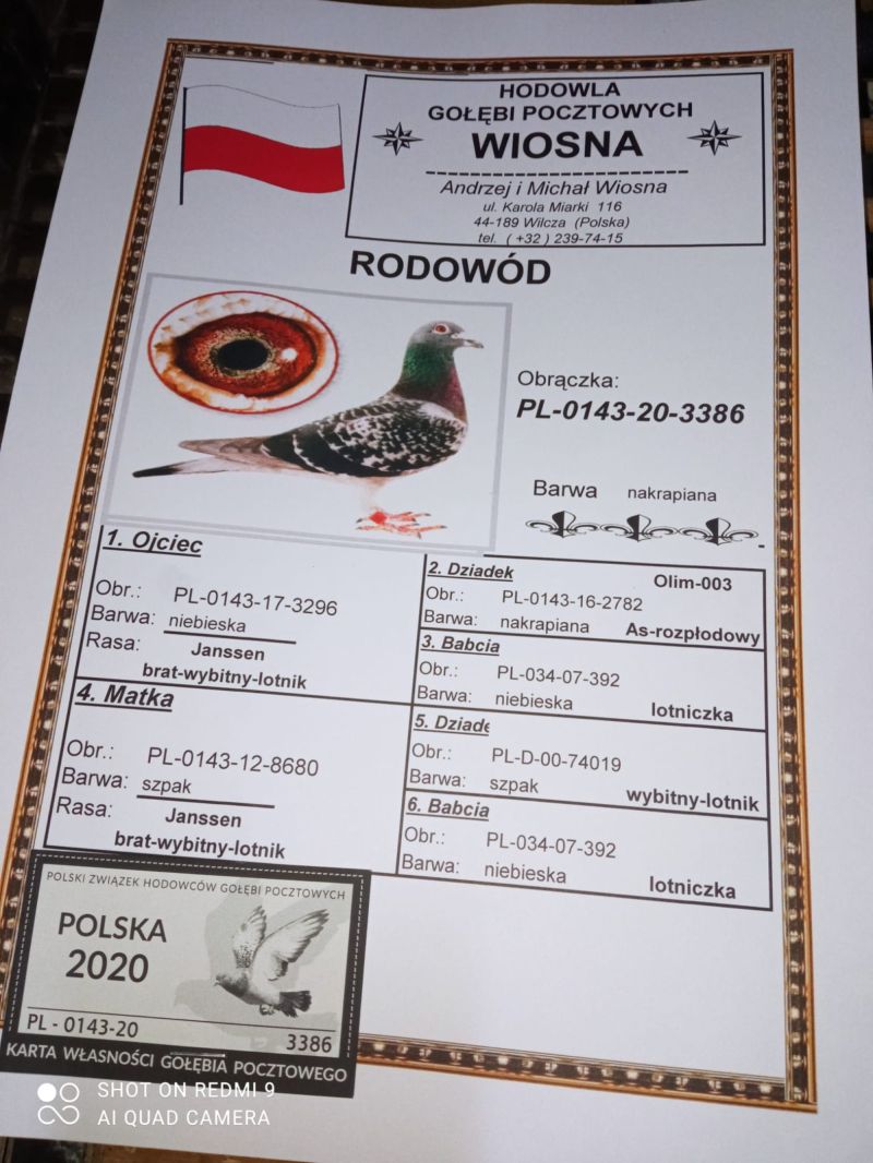 Opis: Witam mam do sprzedania samca oryg. Andrzeja i Michała Wiosny. Mistrzowie Polski GMP 2025. Więcej informacji pod numerem telefonu.