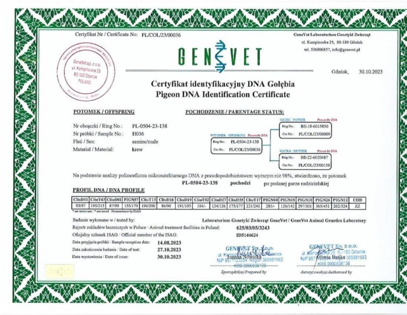 Opis: Oryginalny gołąb z hodowli K.Kowara Szczegóły pochodzenia w rodowodzie. Więcej informacji pod nr tel.: 665-031-548 Możliwa wysyłka-kurier 150zł