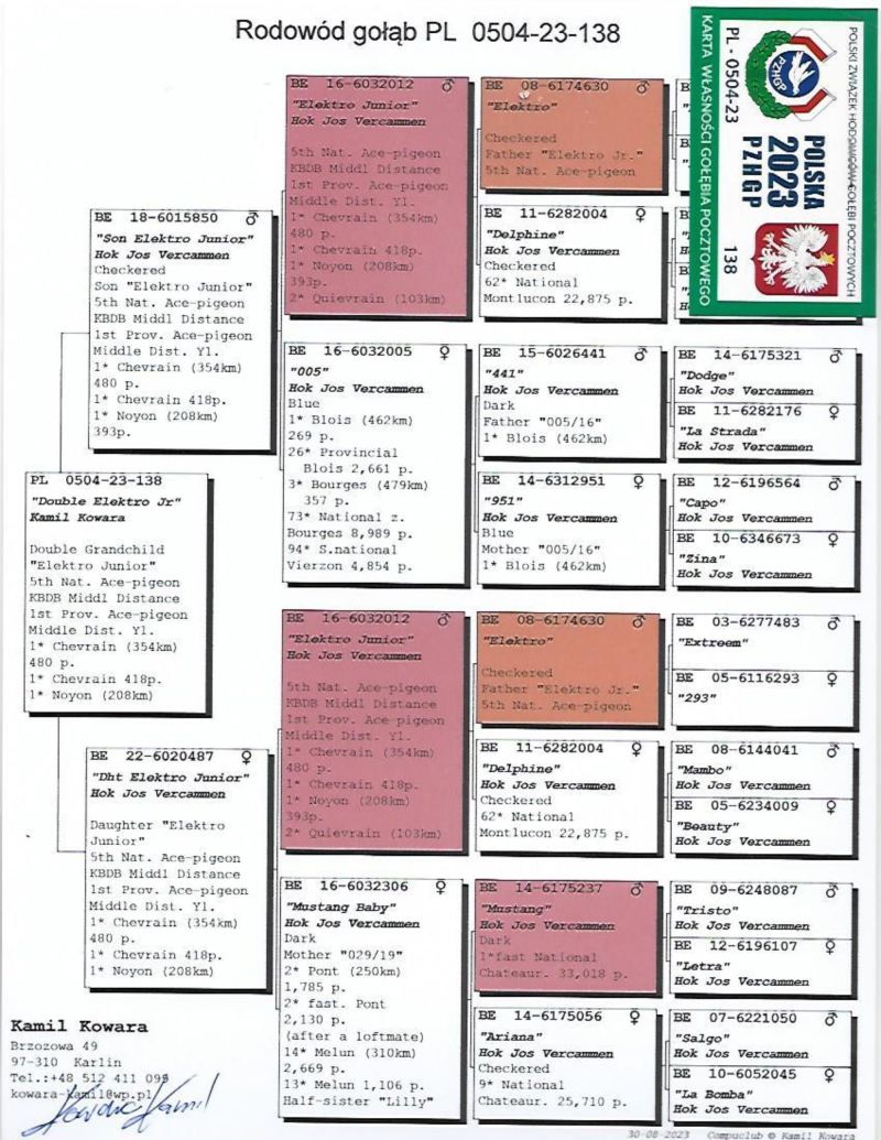 PL-0504-23-138 Oryg. K.Kowara - 100% Vercammen cert.DNA Podwójny prawnuk Elektro/Mustang