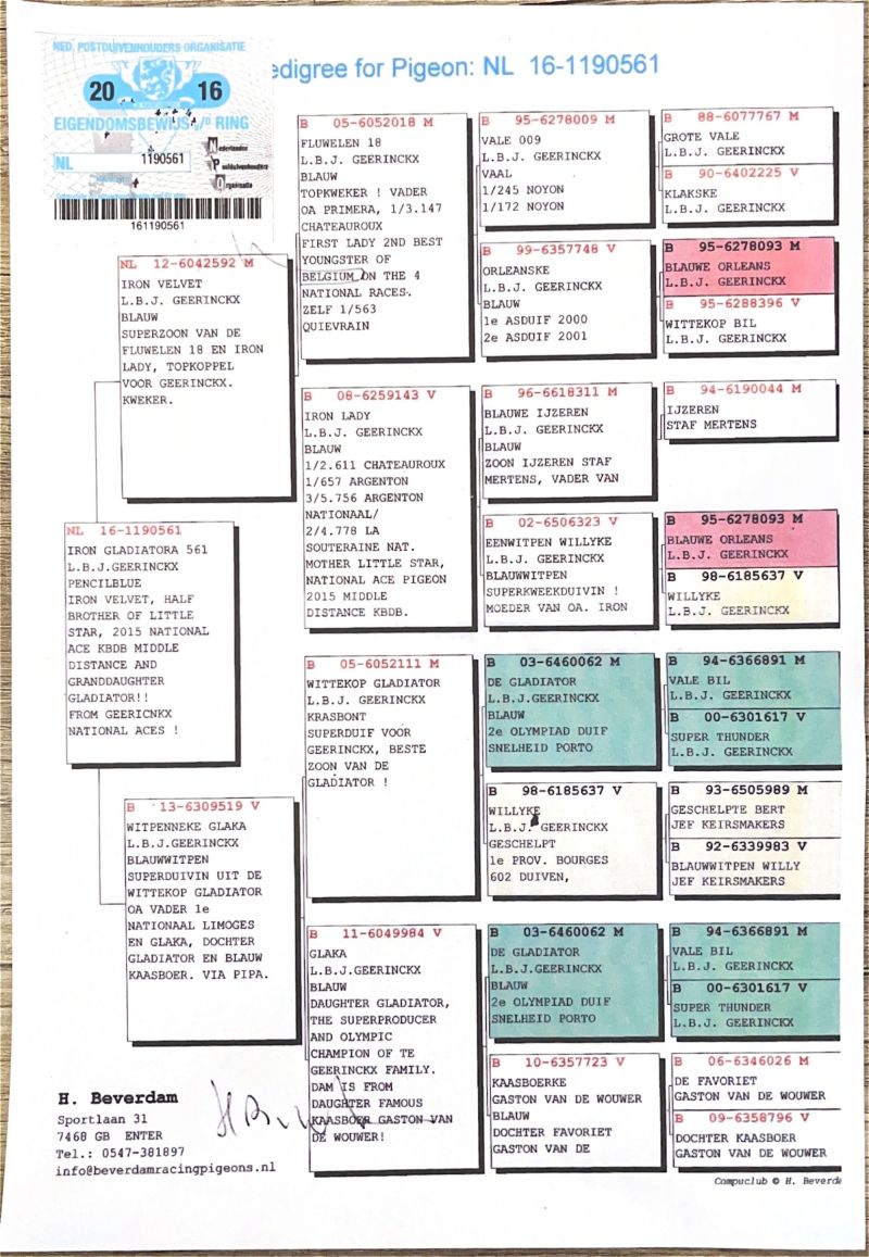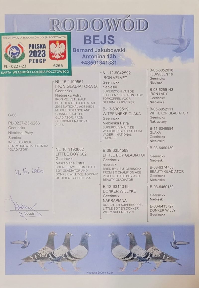 PL-0227-23-6266 inbred Gladiator 100% L.B.J. Geerinckx
