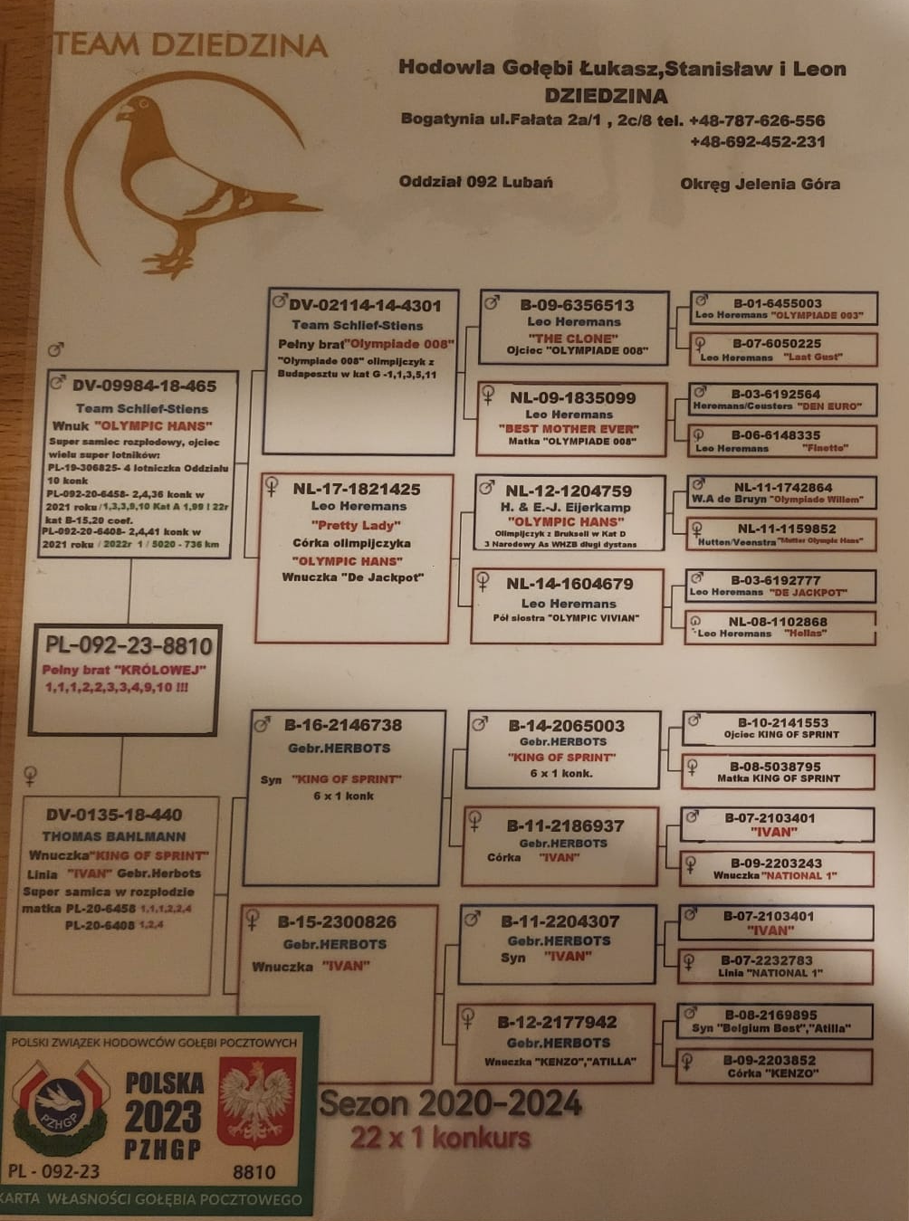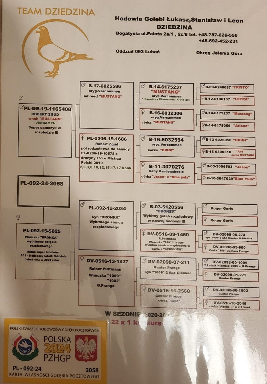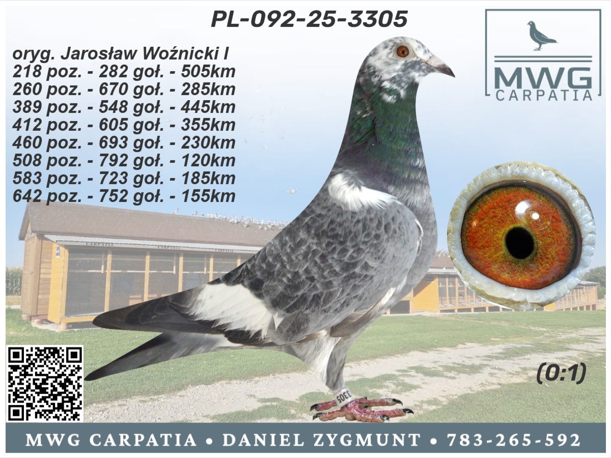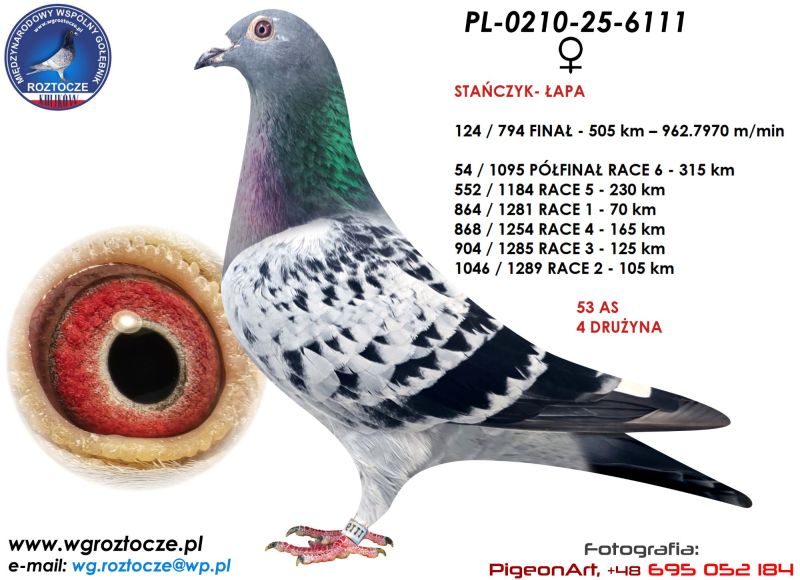 | Lot | Data | Dystans [km] | Ilość gołębi | Pozycja | Prędkość [m/min] |
