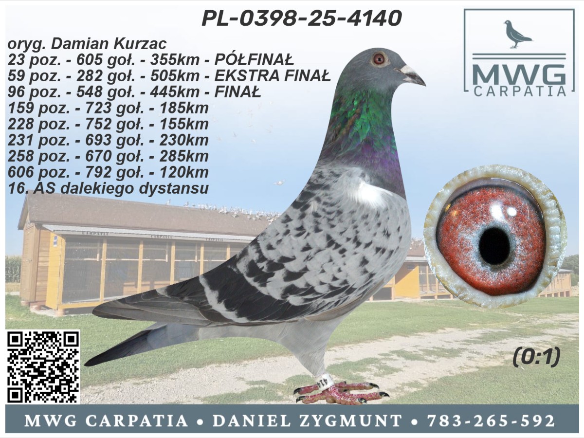 | Lot | Data | Dystans [km] | Ilość gołębi | Pozycja | Prędkość [m/min] |