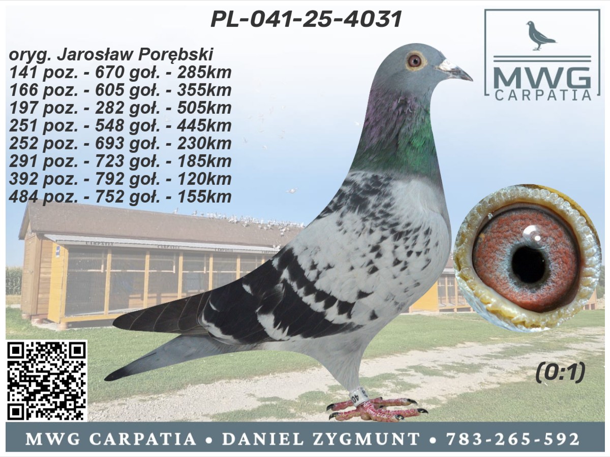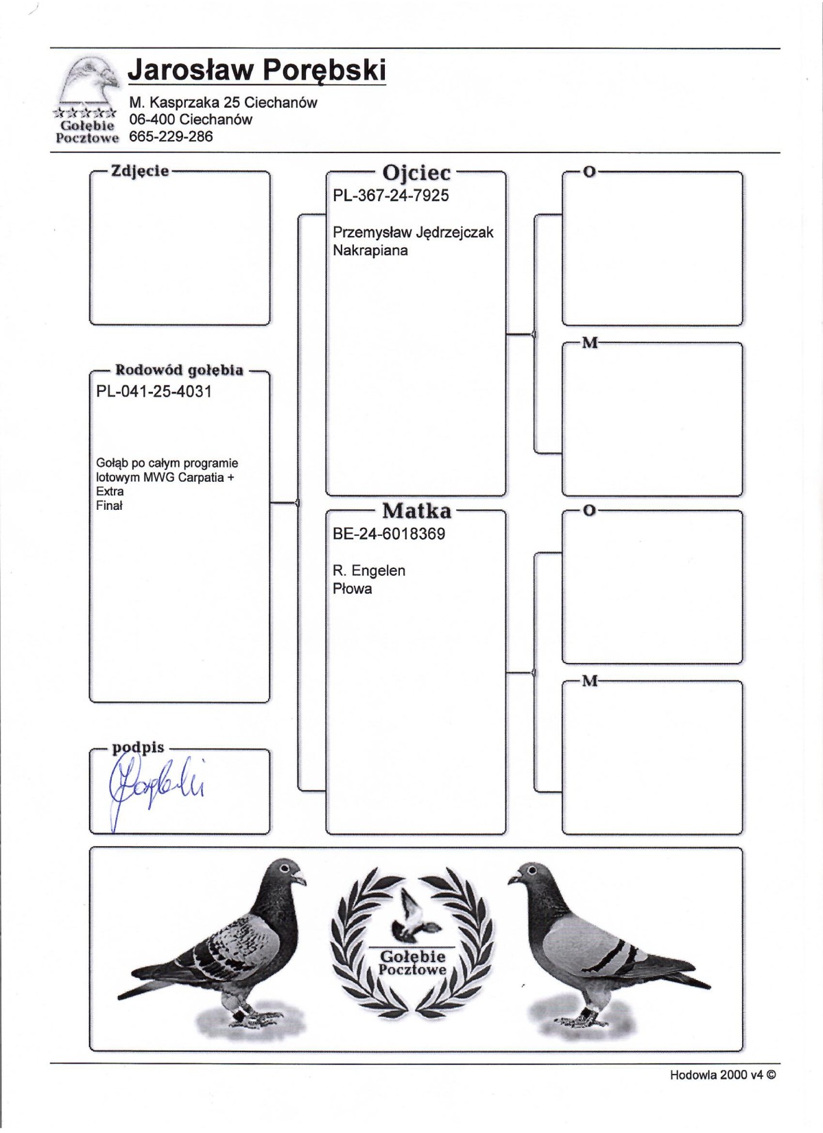 | Lot | Data | Dystans [km] | Ilość gołębi | Pozycja | Prędkość [m/min] |