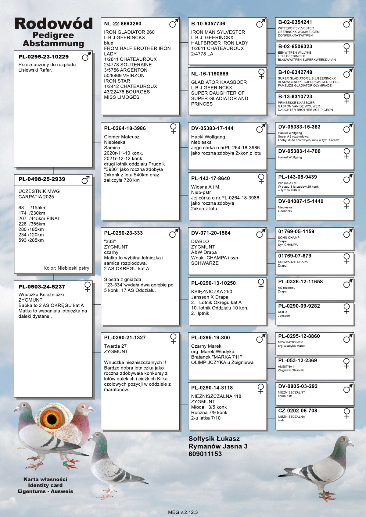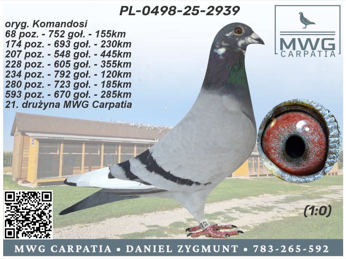 | Lot | Data | Dystans [km] | Ilość gołębi | Pozycja | Prędkość [m/min] |
