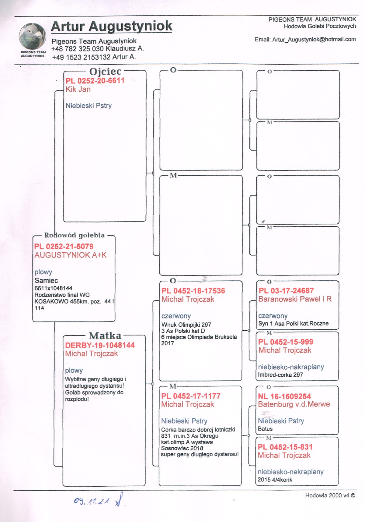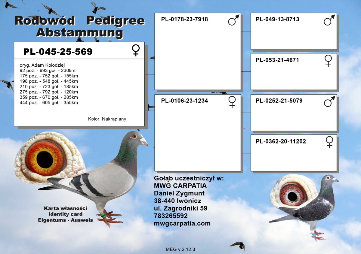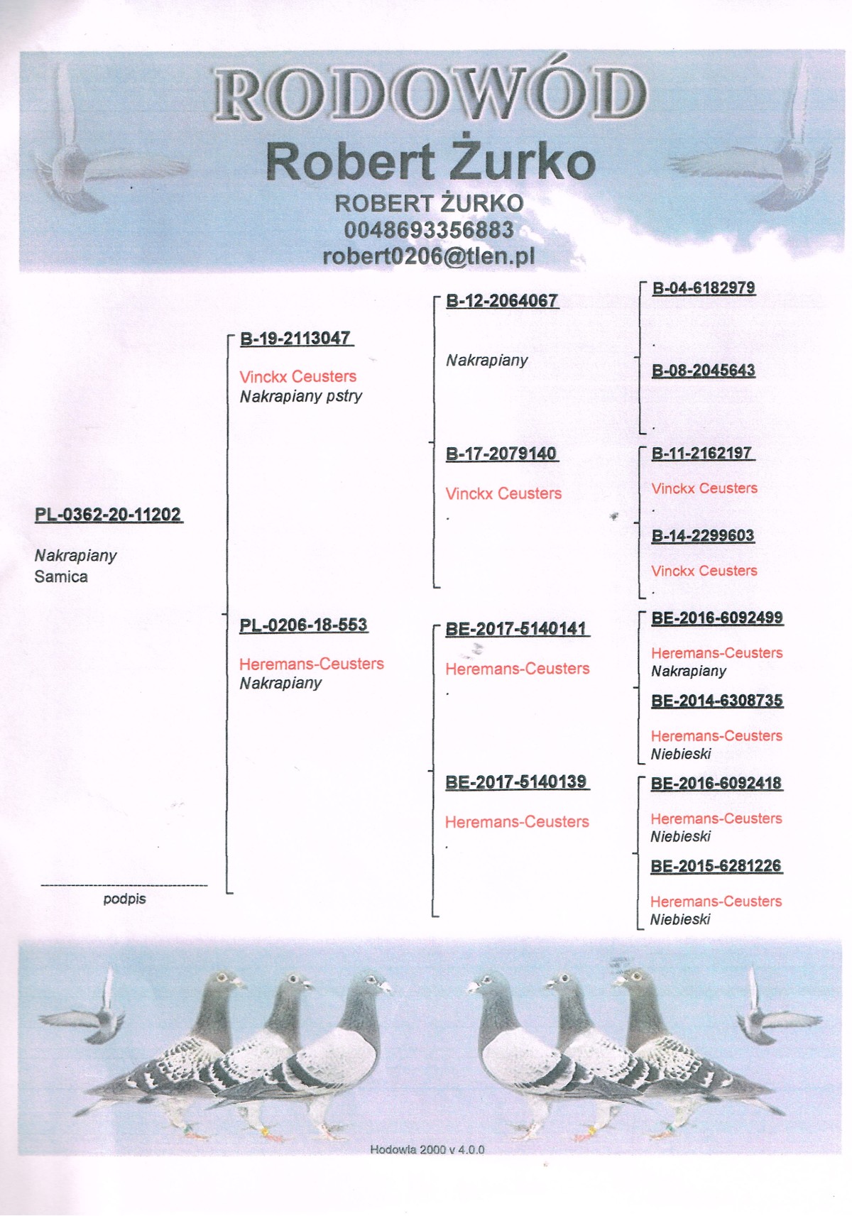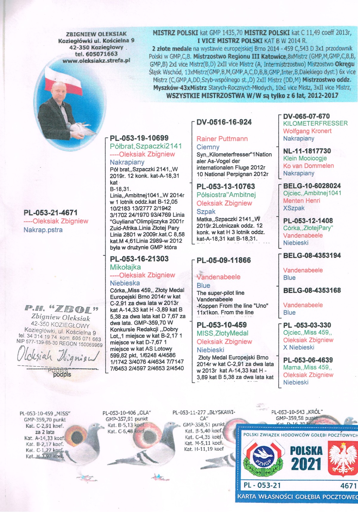 | Lot | Data | Dystans [km] | Ilość gołębi | Pozycja | Prędkość [m/min] |