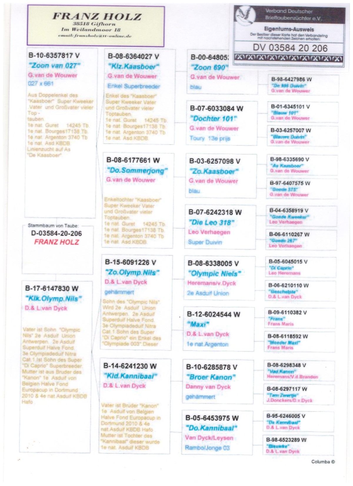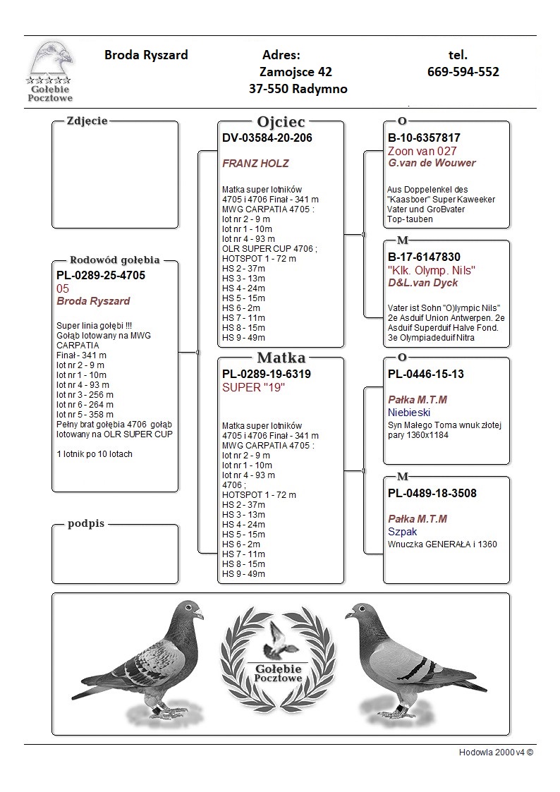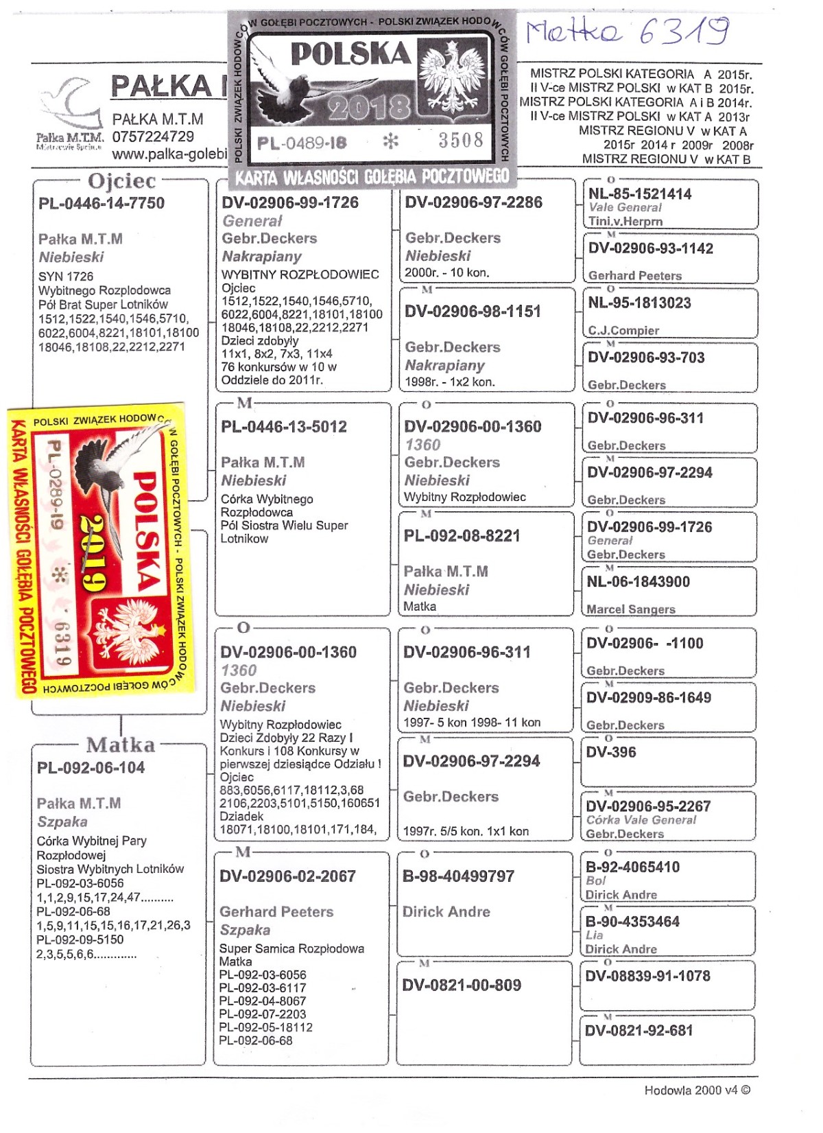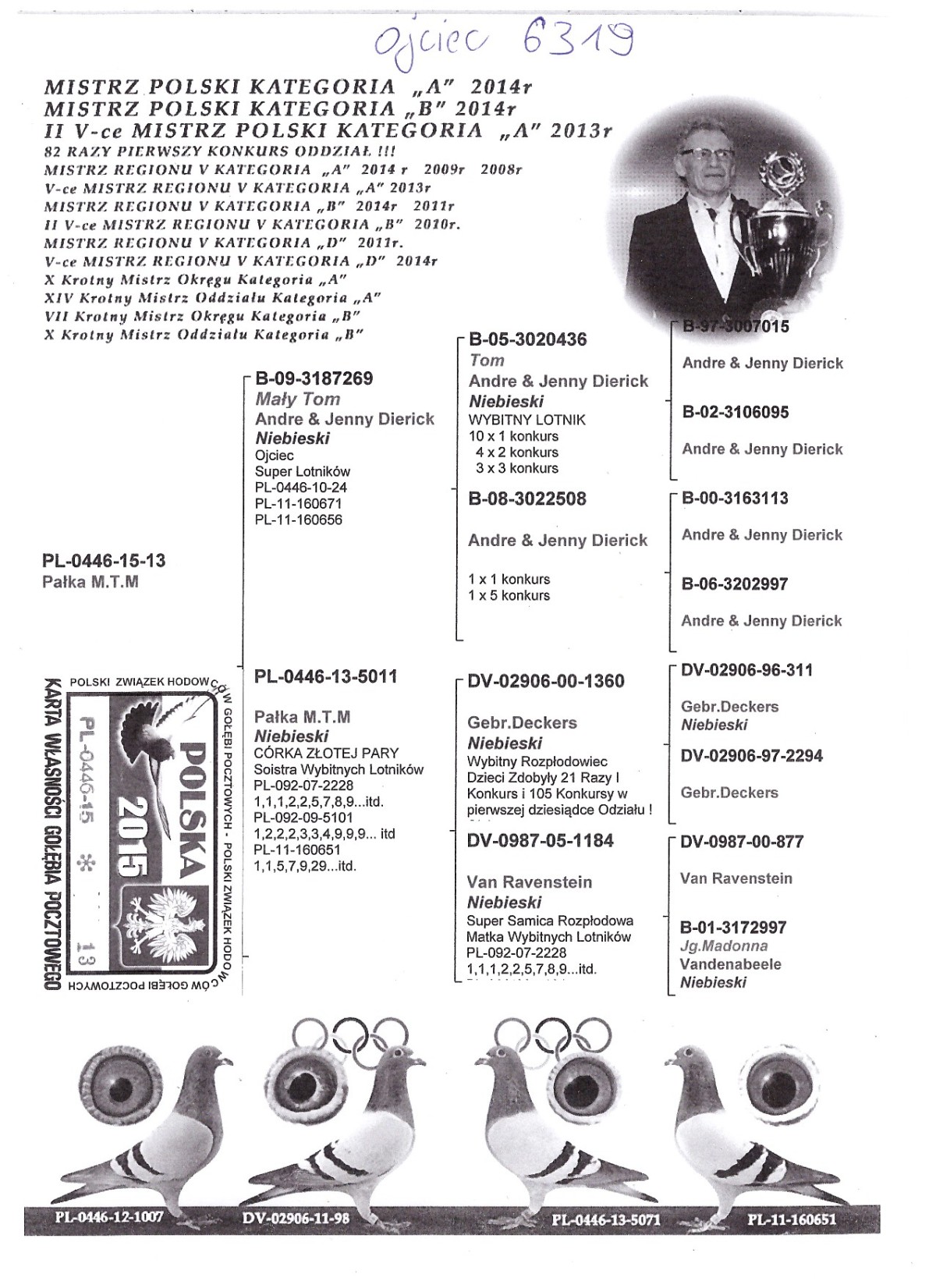 | Lot | Data | Dystans [km] | Ilość gołębi | Pozycja | Prędkość [m/min] |