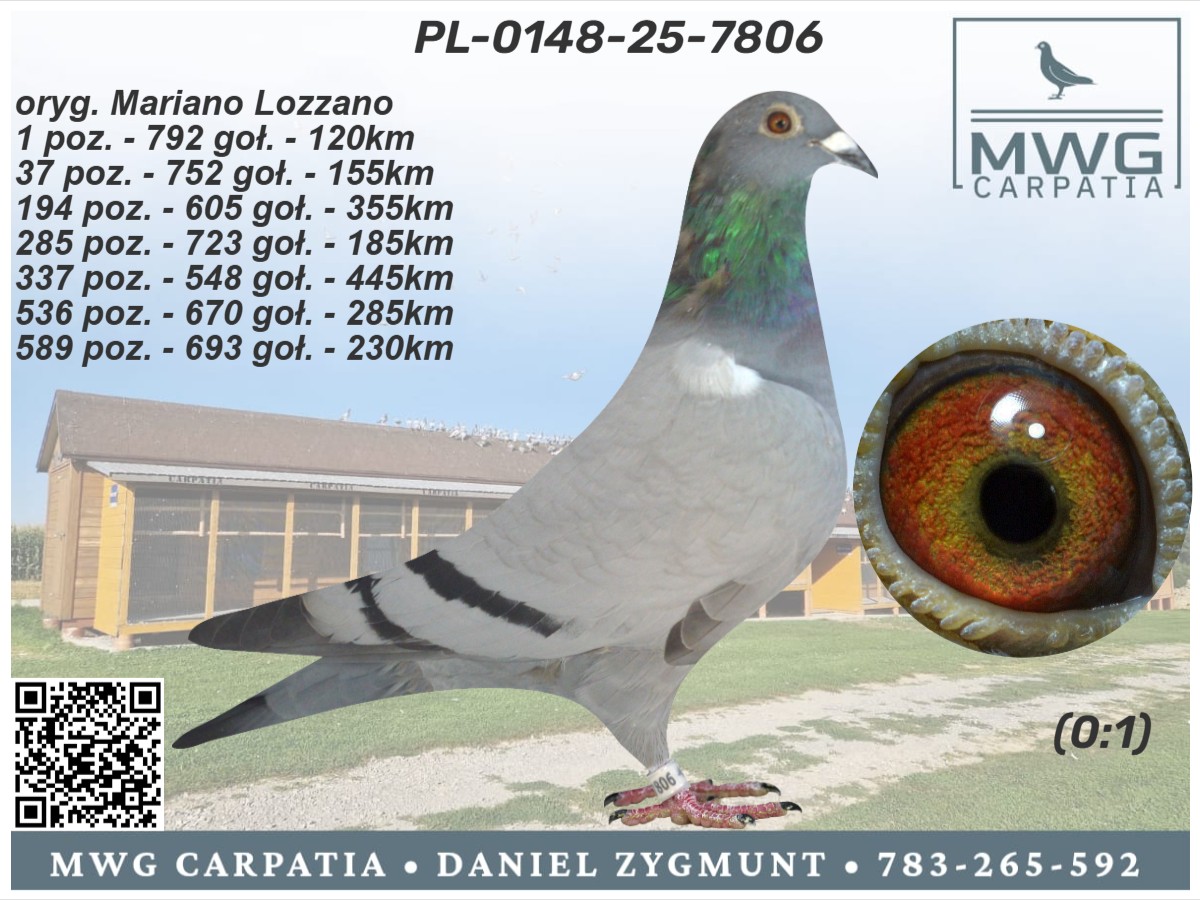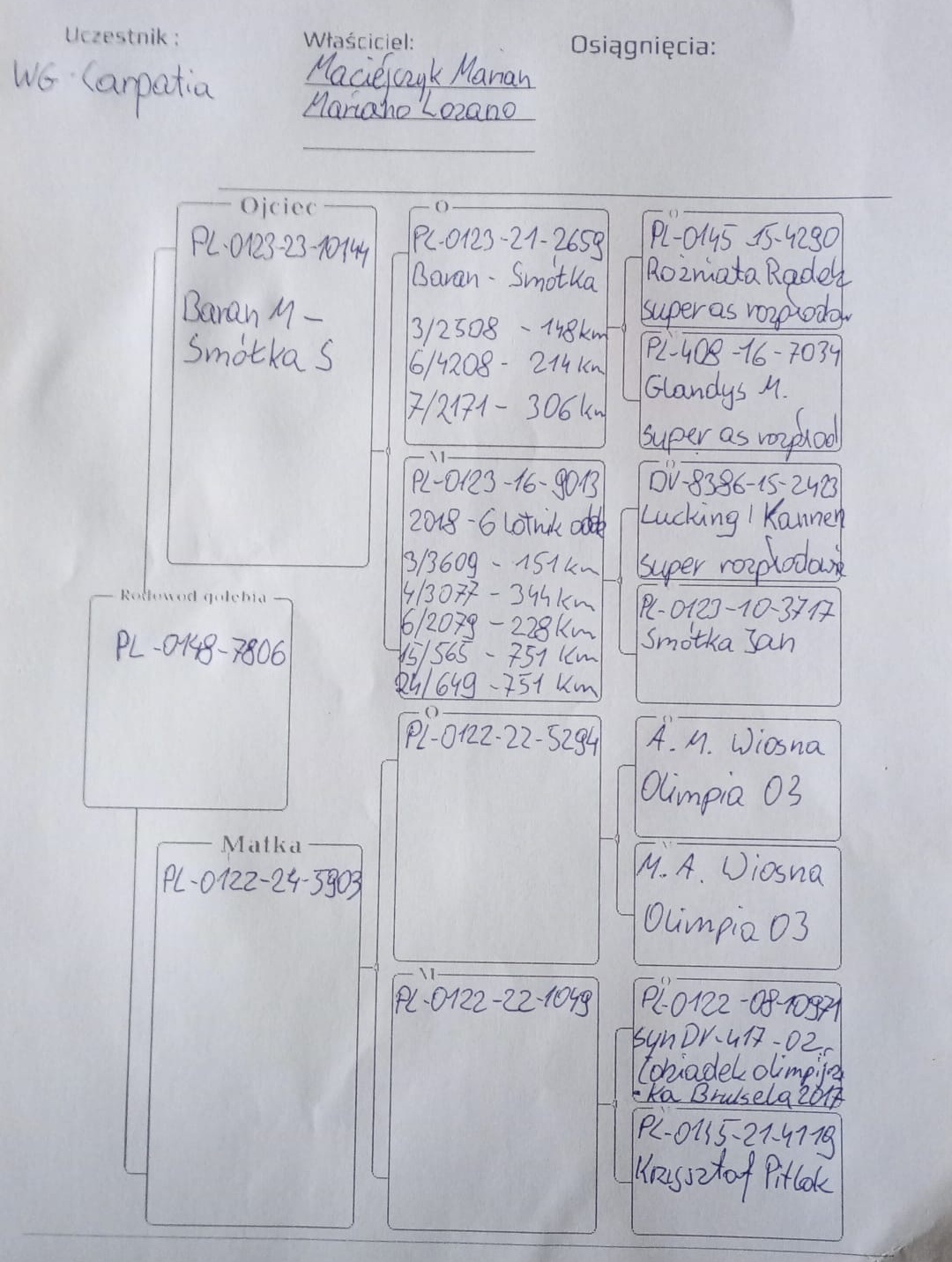 | Lot | Data | Dystans [km] | Ilość gołębi | Pozycja | Prędkość [m/min] |