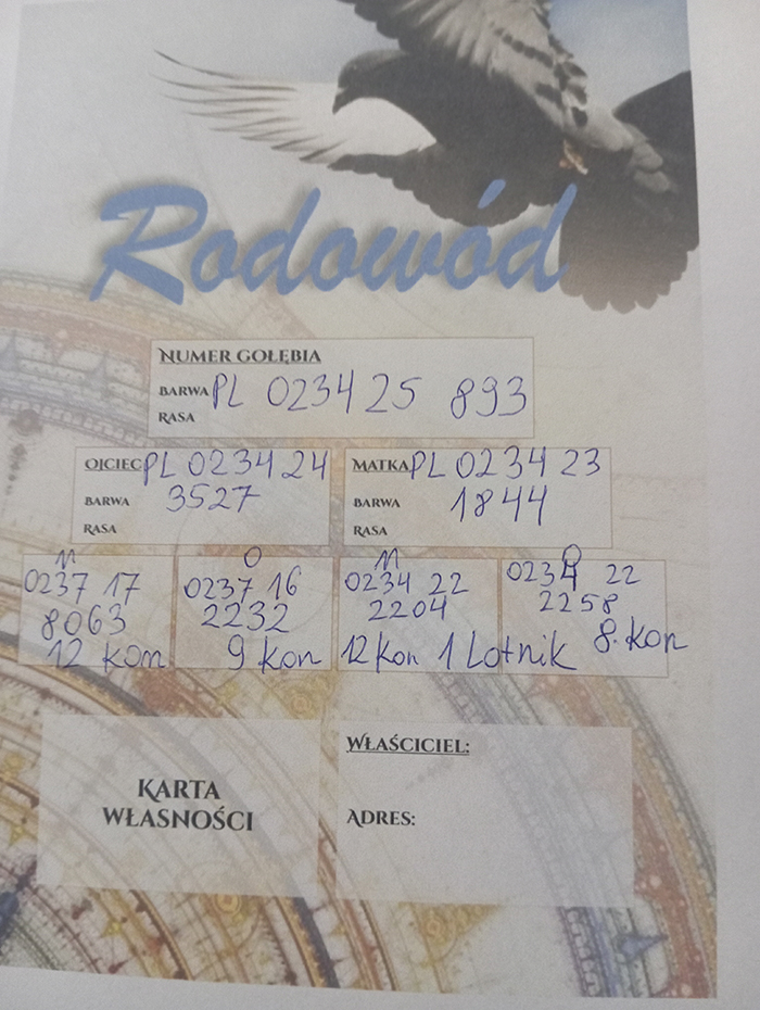 | Lot | Data | Dystans [km] | Ilość gołębi | Pozycja | Prędkość [m/min] |