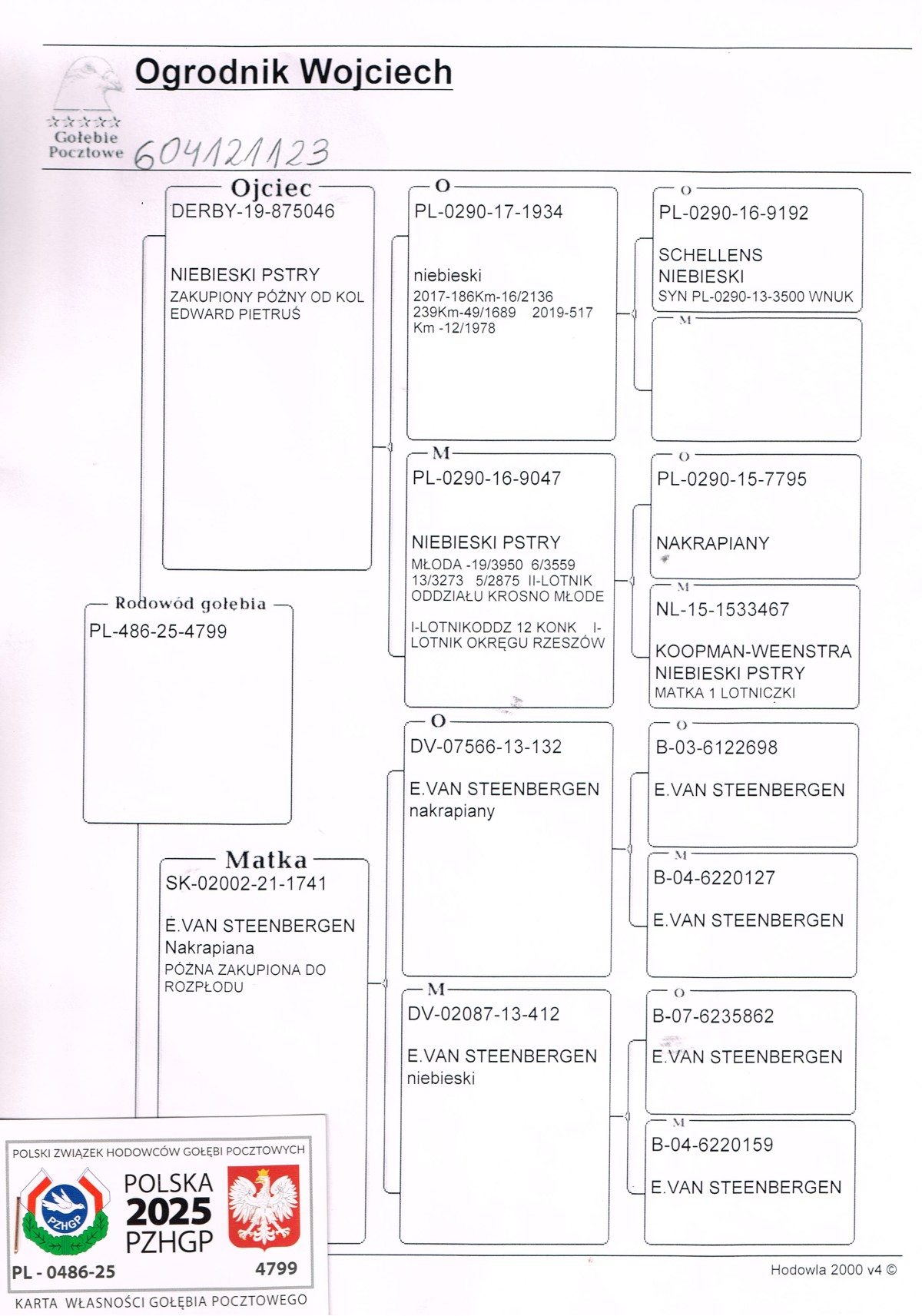 | Lot | Data | Dystans [km] | Ilość gołębi | Pozycja | Prędkość [m/min] |