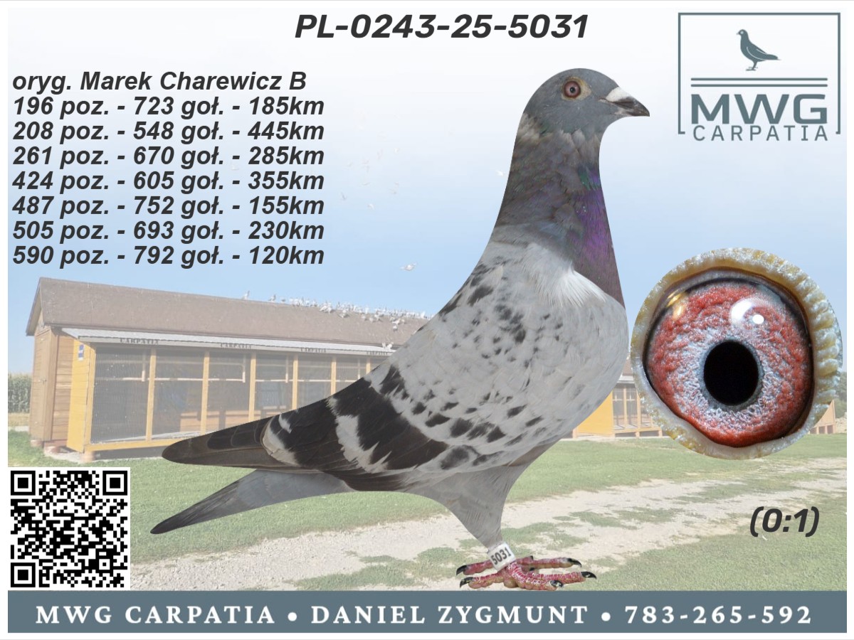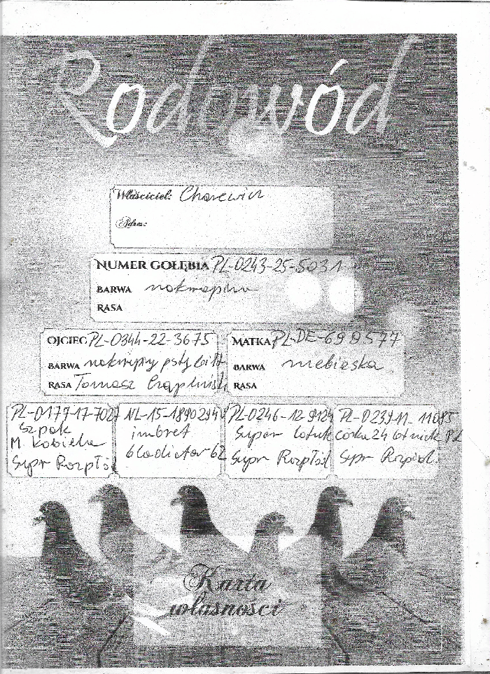 | Lot | Data | Dystans [km] | Ilość gołębi | Pozycja | Prędkość [m/min] |