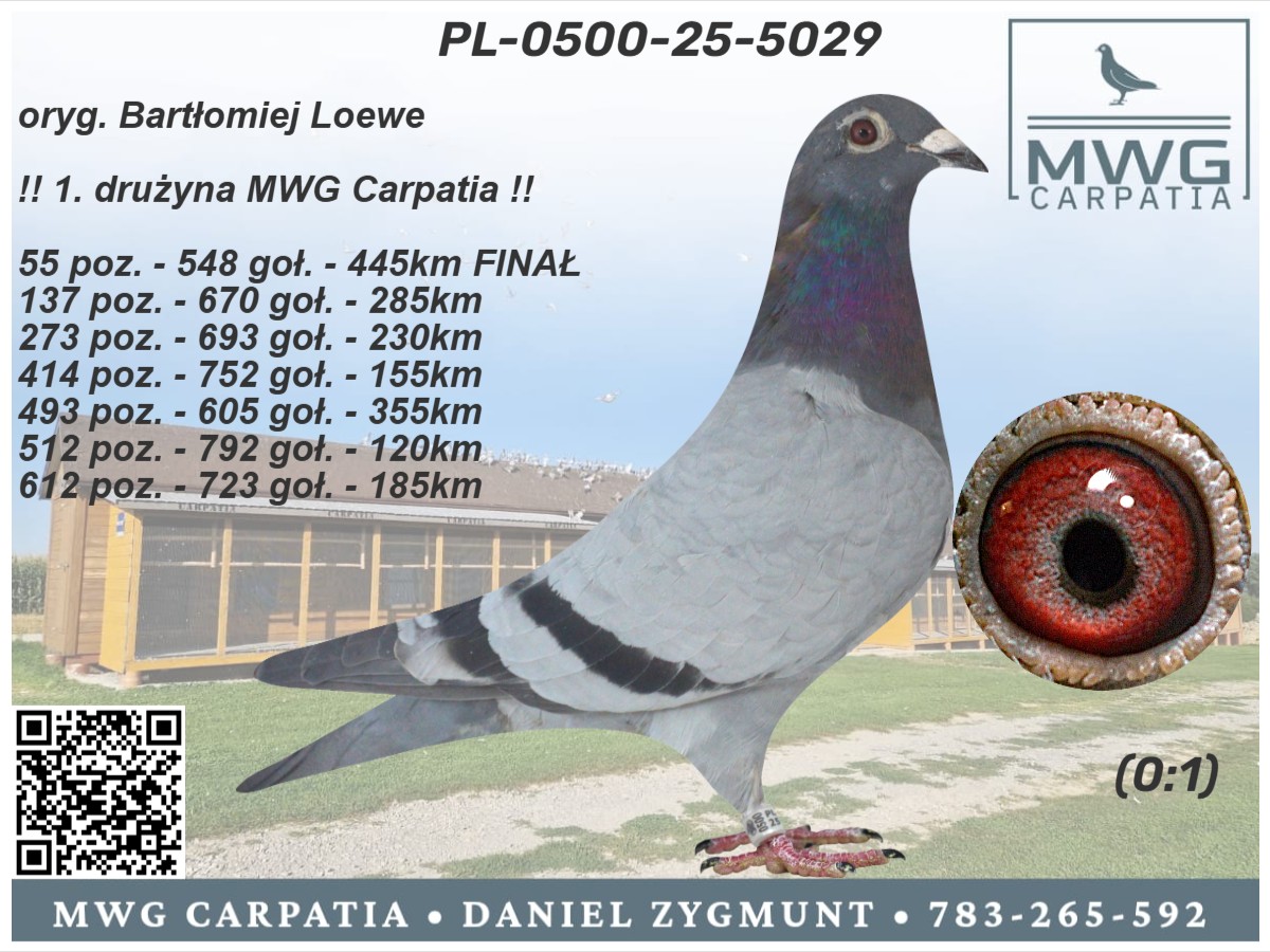 | Lot | Data | Dystans [km] | Ilość gołębi | Pozycja | Prędkość [m/min] |