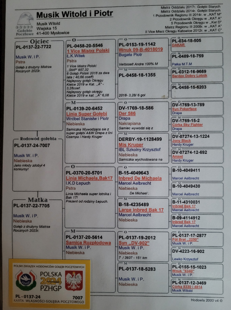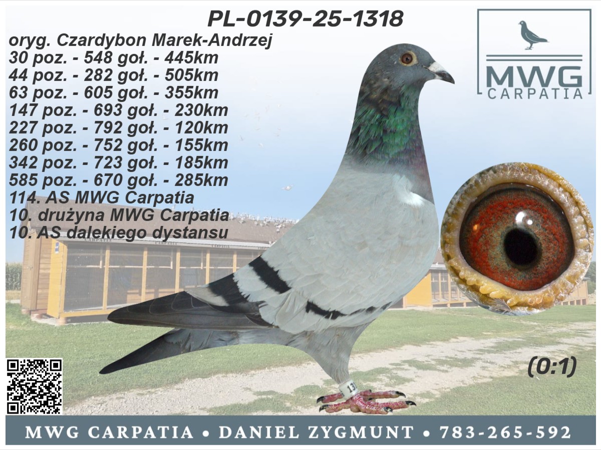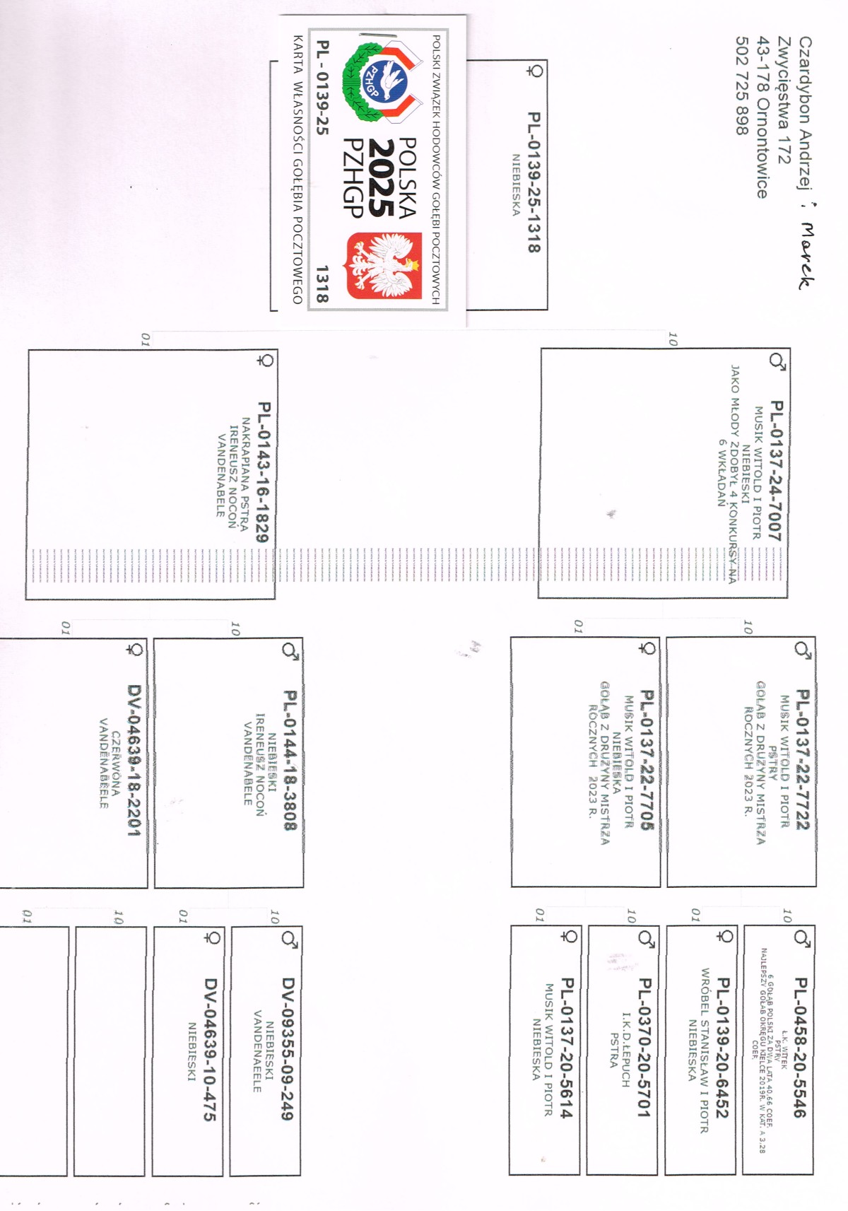 | Lot | Data | Dystans [km] | Ilość gołębi | Pozycja | Prędkość [m/min] |