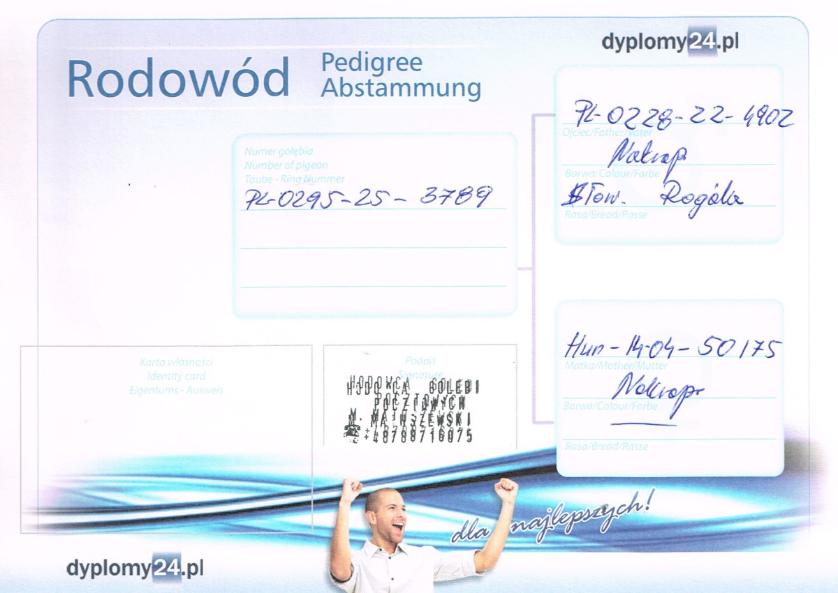 | Lot | Data | Dystans [km] | Ilość gołębi | Pozycja | Prędkość [m/min] |