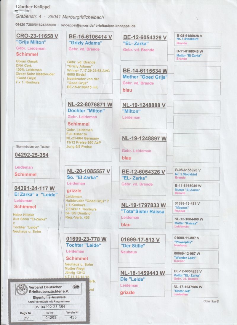 Młody gołąb oryg.G.Knoeppel z ex pochodzeniem,którego dziadkiem jest Arizly Adams B-414 ,brat B-415 Goede Grijs 7x1kon.koszt wysyłki 150 zł(1-3 szt)