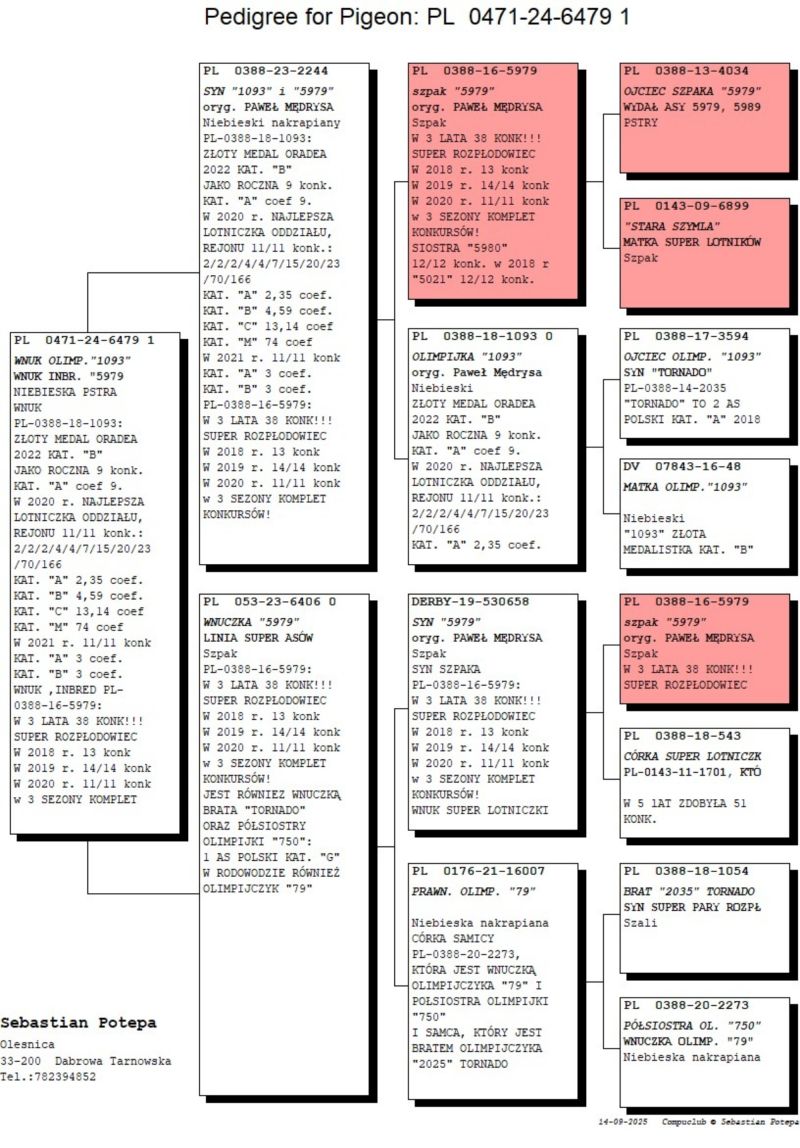 PL-0471-24-6479 - oryg. S. Potępa (100% P. Mędrysa) wnuk OLIMPIJKI 1093, wnuk inbred szpaka 5979