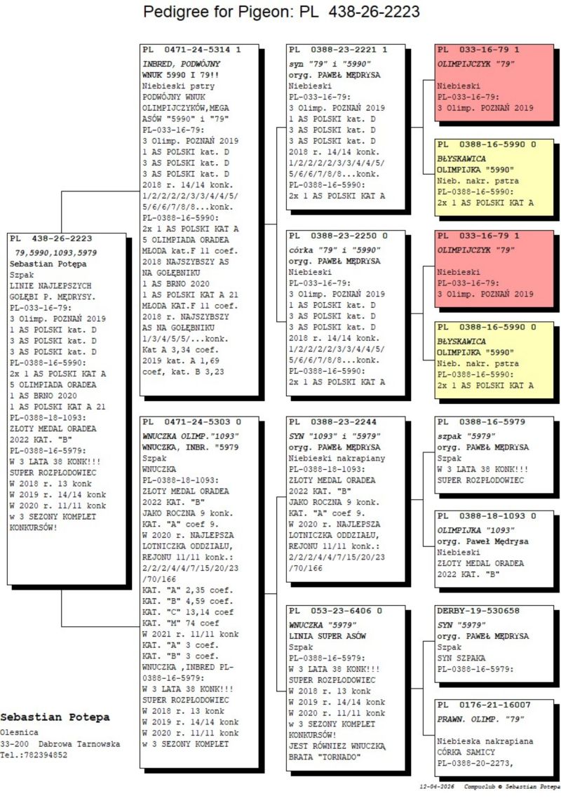 PL-0438-26-2223 - S. Potępa (100% P. Mędrysa linia Olimpijczyków 79, 5990, 1093, 5979)