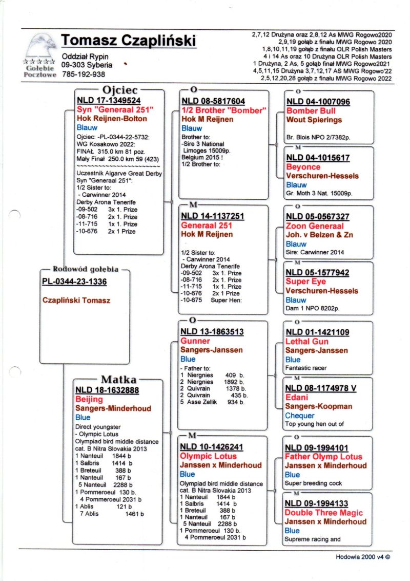 Opis: Oryginalny gołąb z hodowli Tomasza Czaplińskiego. Szczegóły pochodzenia w rodowodzie. Więcej informacji pod nr tel.: 608 077 136 **Wysyłka do 6 sztuk w jednej paczce za 150zł, przedpłata na konto.